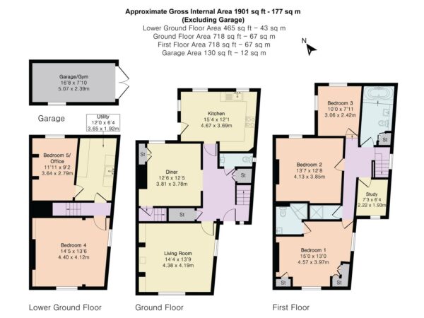 On the first floor, a bright landing leads to the bedrooms and study, along with a separate shower room. The main bedroom benefits from built-in wardrobes and an en-suite shower room. There are two further bedrooms, a study/home office and a well-appointed family bathroom.