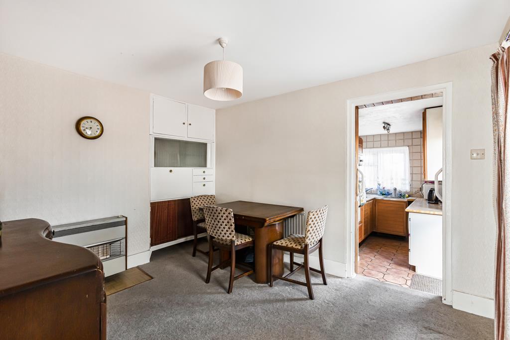 Internally, the property retains a traditional feel with well sized rooms throughout. The ground floor comprises a bright and spacious living room to the front, complemented by a separate dining room that flows onto the kitchen that overlooks the rear garden. The kitchen sits beyond and, while functional, presents a clear opportunity for reconfiguration and extension, subject to the usual planning consents. The family bathroom completes the ground floor accommodation.A useful basement adds further versatility, ideal for storage or potential conversion.