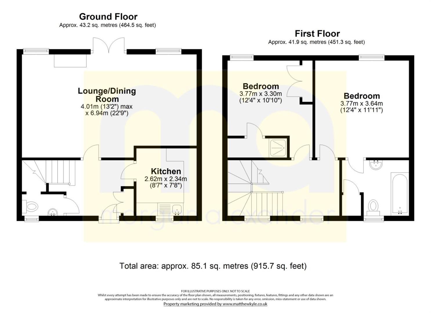 Upstairs, two well-appointed bedrooms each enjoy en-suite facilities, with the principal bedroom offering an en-suite bathroom and the guest bedroom featuring an en-suite shower.