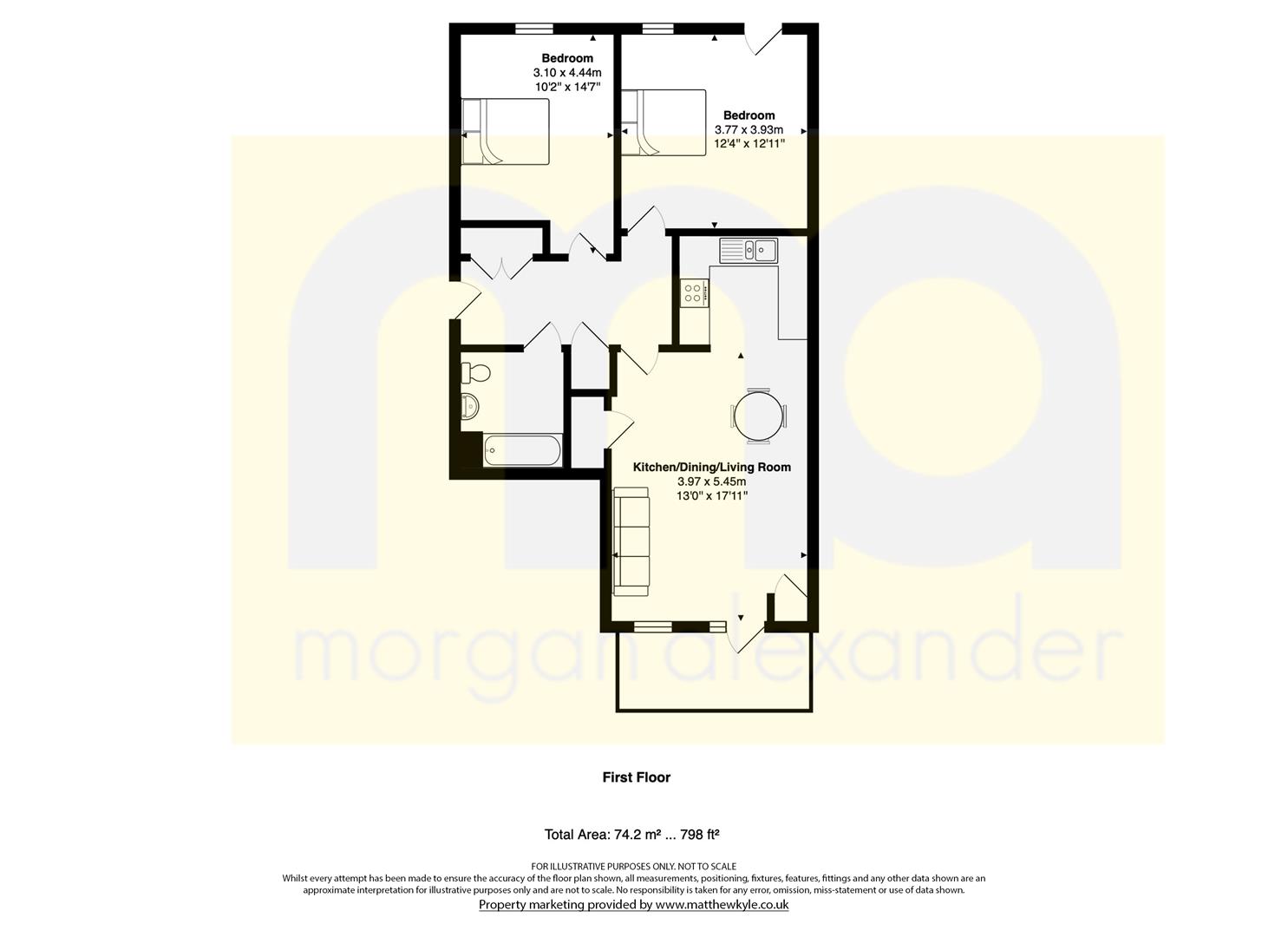 Both bedrooms are well-proportioned doubles, with large windows ensuring a bright and airy feel throughout. A particular feature of this apartment is the rare benefit of a private balcony, offering a perfect space for morning coffee or al-fresco dining.
