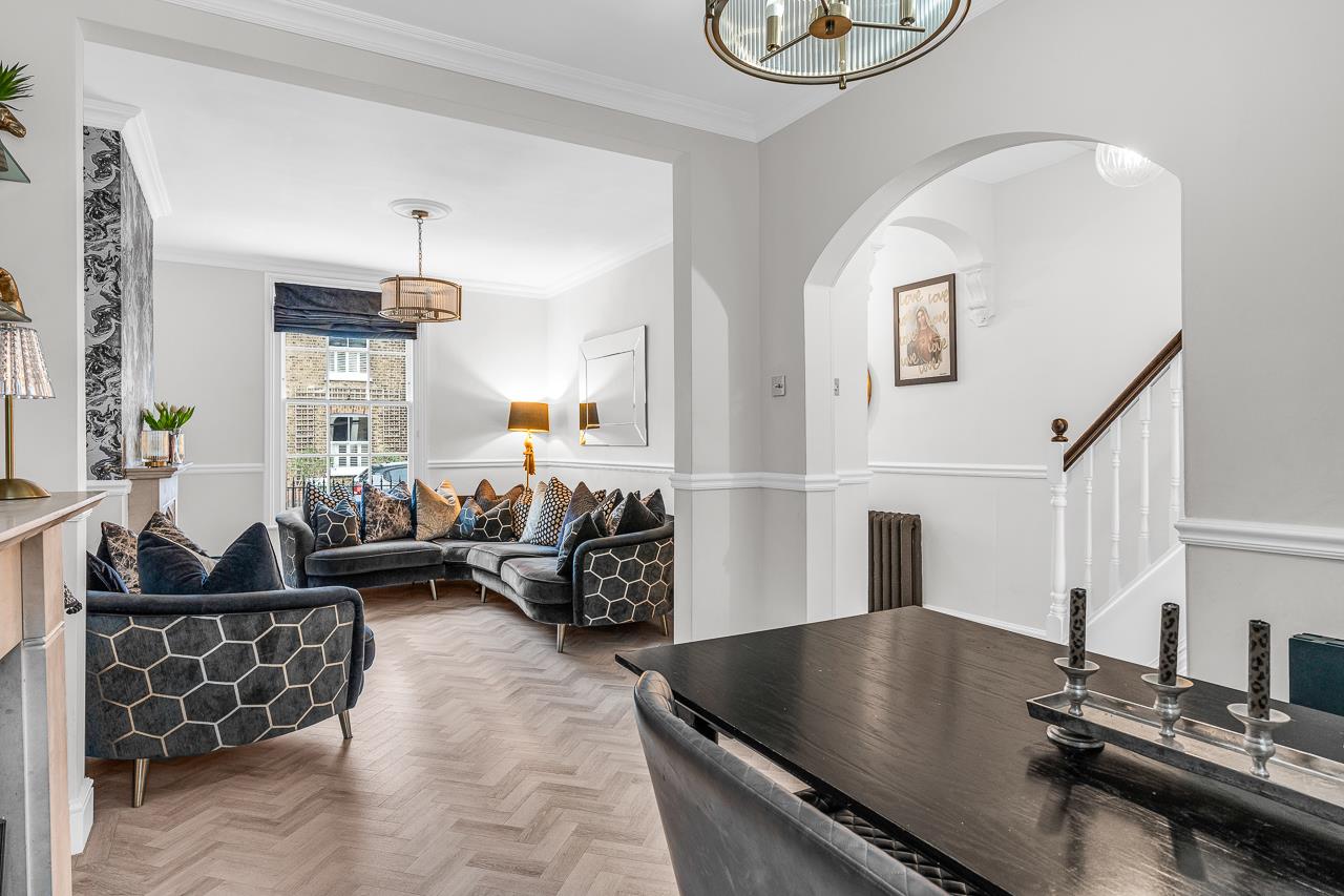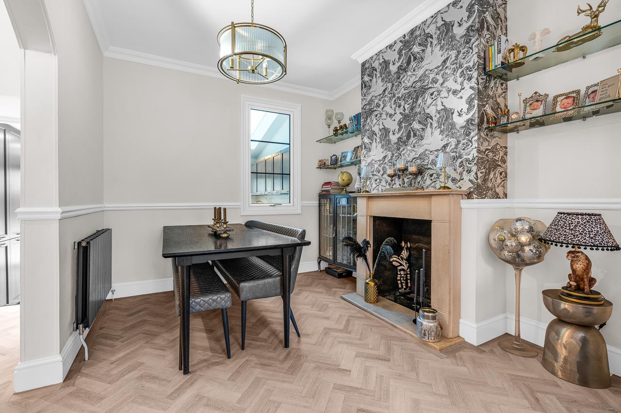 Set over four beautifully arranged floors, this exceptional three-bedroom Victorian home has been comprehensively upgraded to create a stylish, design-led interior while retaining the period features that give it real character. Located on one of Hertford’s most desirable streets, it sits just moments from the town centre and Hertford East station.You enter via a storm porch into a welcoming hallway. The ground floor offers a classic yet contemporary flow, with a front reception room featuring a fireplace and elegant sash window, opening through to a dining area with parquet-style flooring throughout.