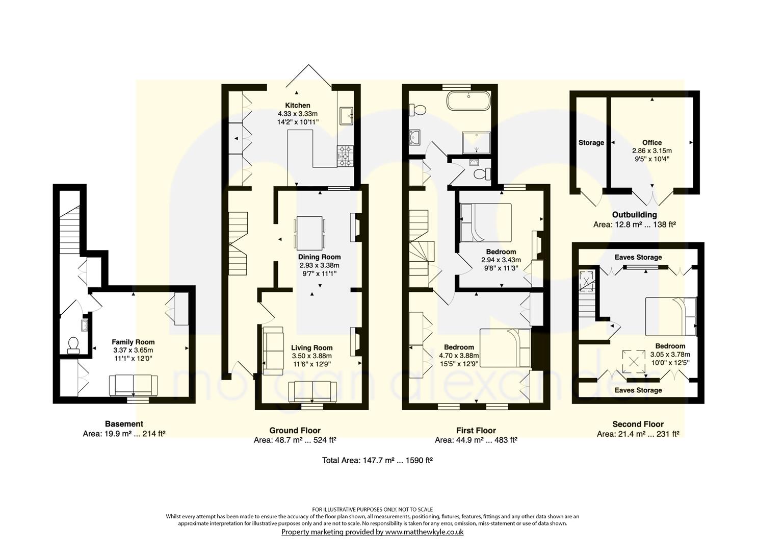 The lower ground floor provides excellent flexibility, currently used as a family room but equally suited as a fourth bedroom, playroom or media space, complemented by a separate cloakroom.