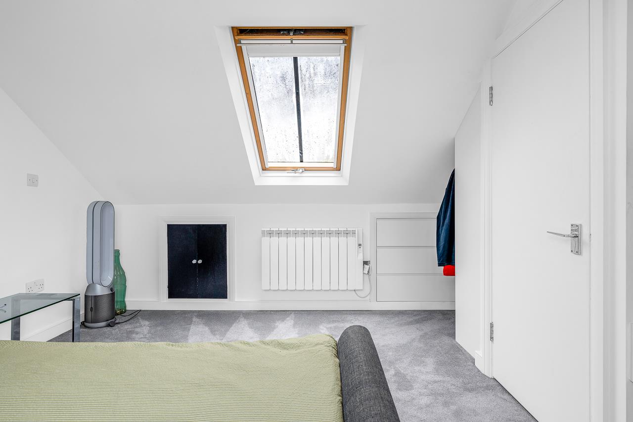 The second floor offers a third double bedroom with Velux window and cleverly designed eaves storage with bespoke fitted drawers.