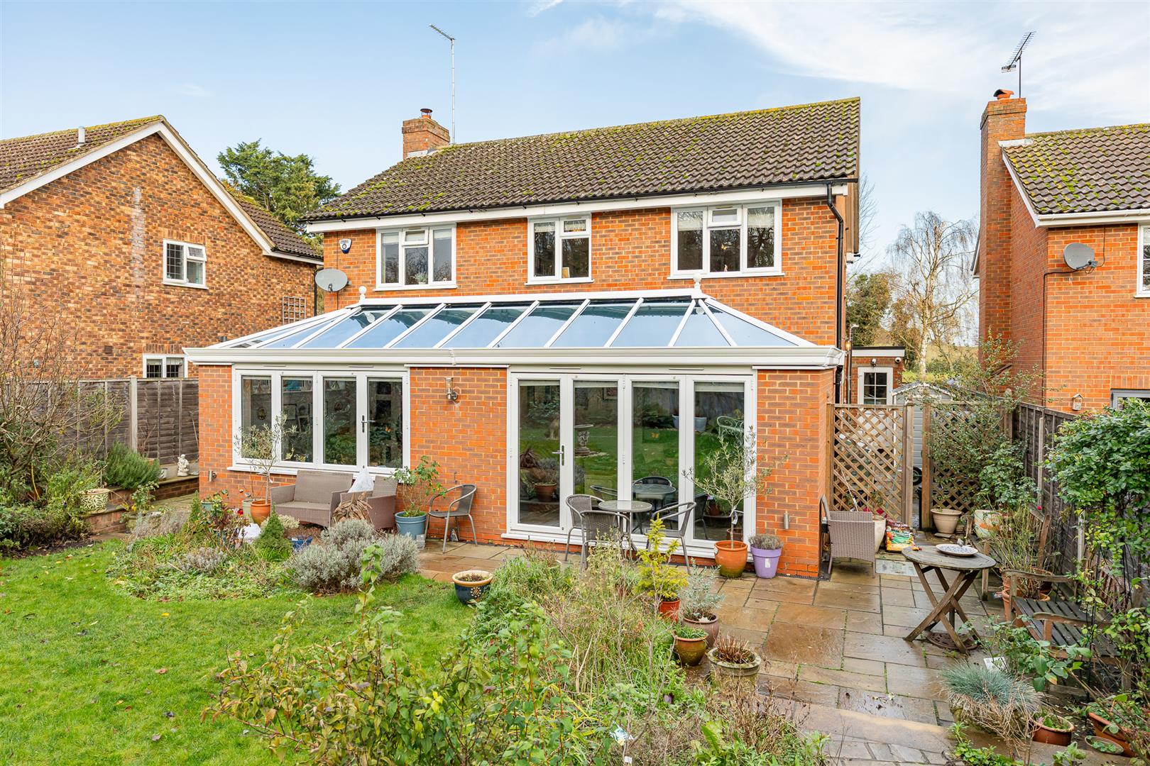 Built approximately 35 years ago, the property has been thoughtfully improved and extended by the current owners, resulting in a superb and versatile family home. It forms part of an exclusive private road of just eight detached houses, all of which enjoy ownership of the private green with far-reaching views over open farmland.