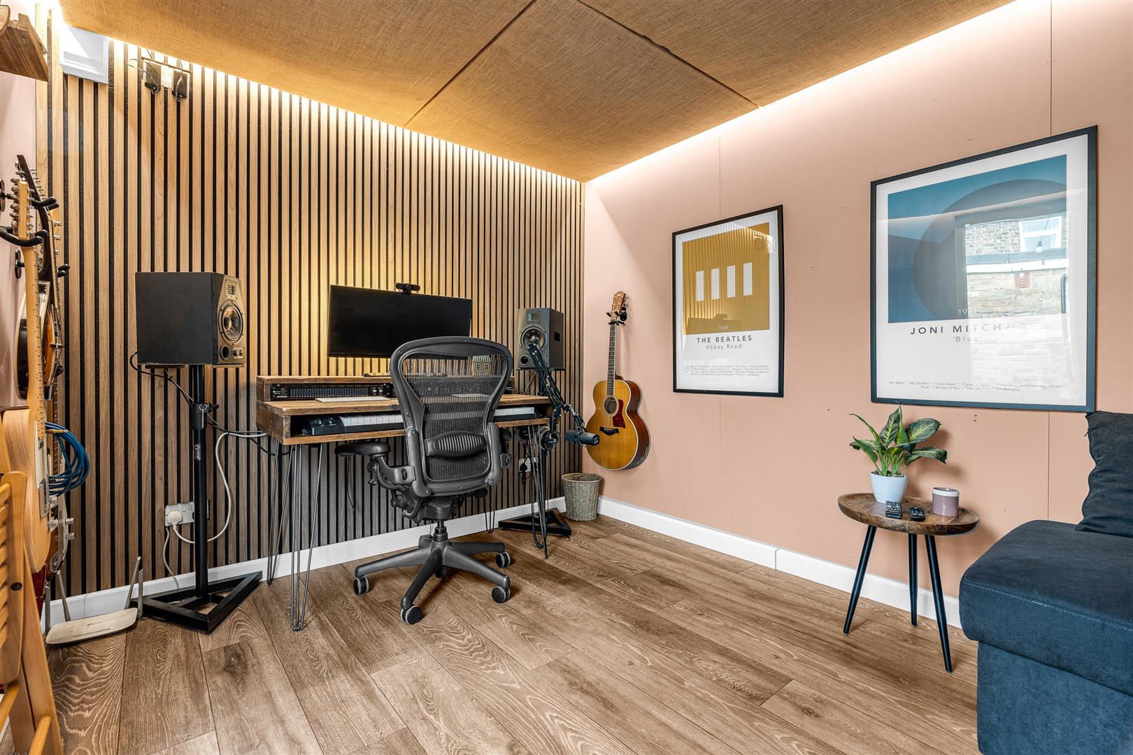 Outside, the landscaped rear garden enjoys a paved patio and side access. The recently constructed outbuilding/studio, complete with power and lighting, is a standout feature—ideal as a professional home office, creative studio, gym or hobby room.