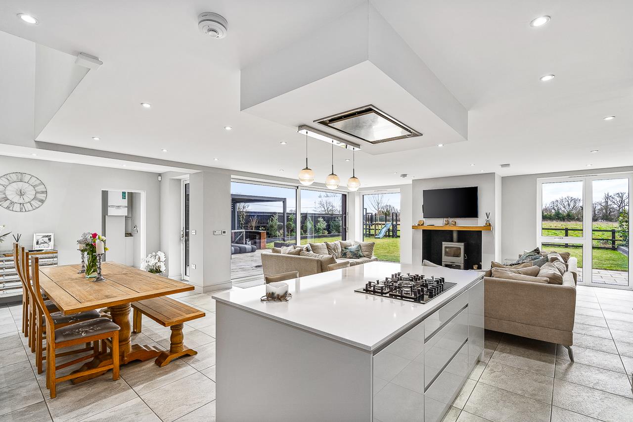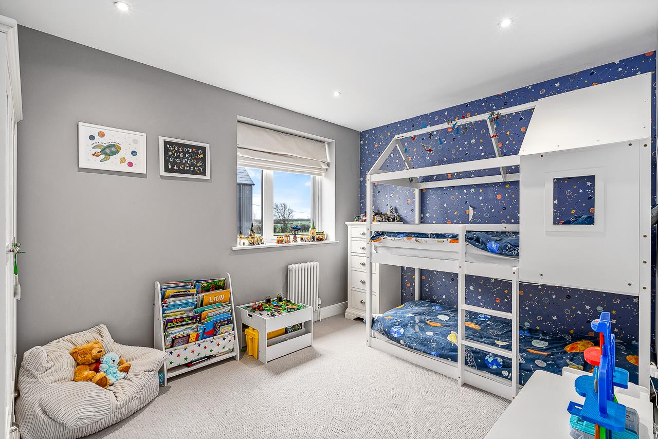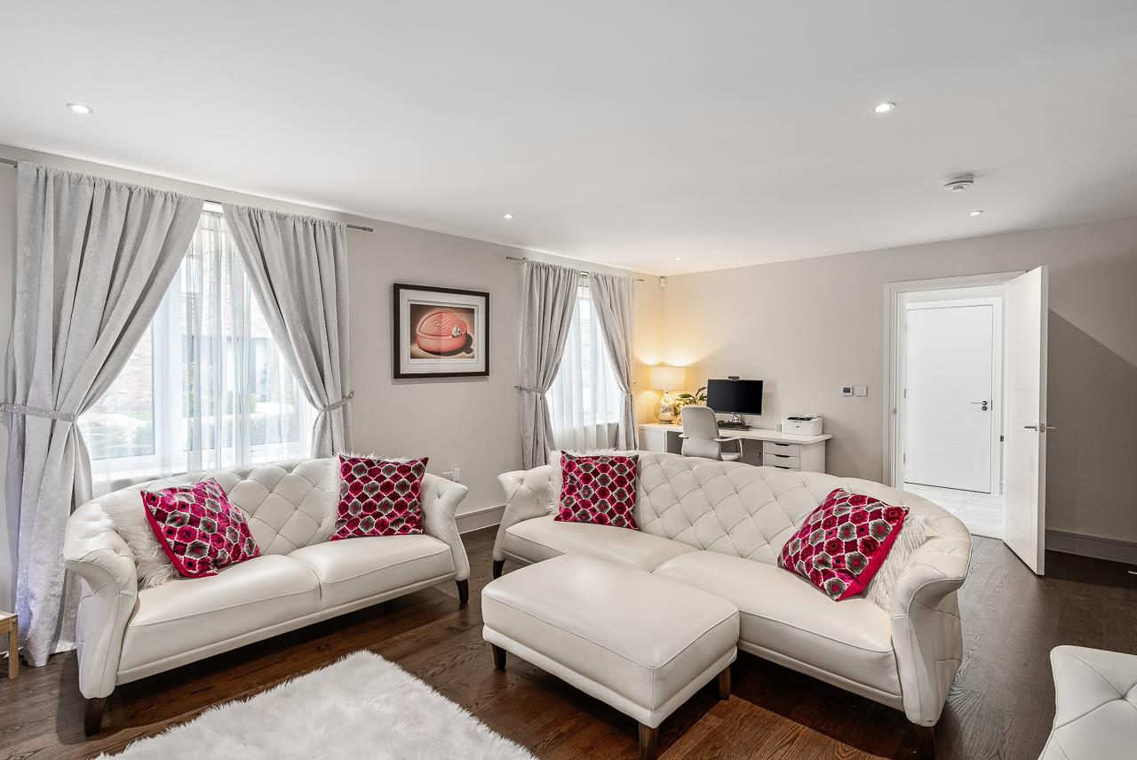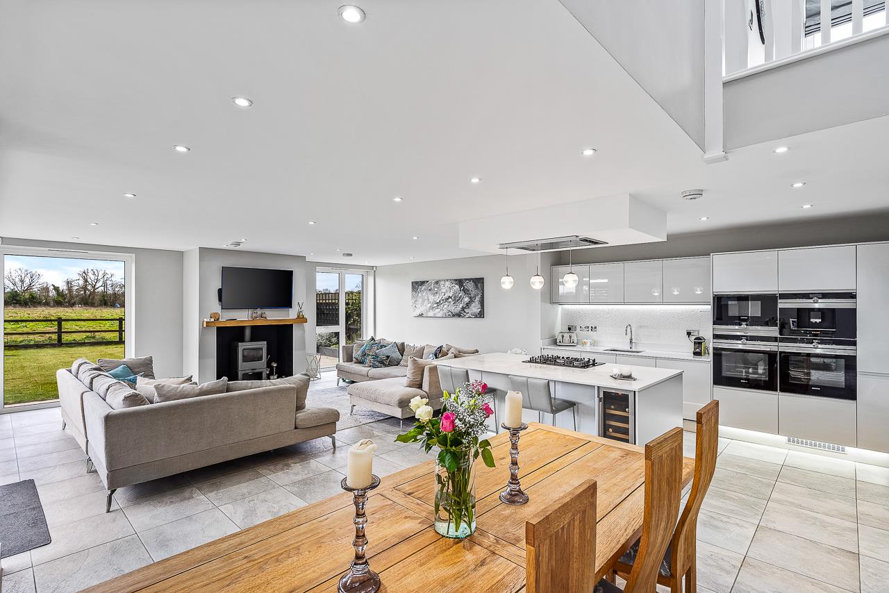 The Searle enjoys a very spacious lounge/kitchen/dining room with a feature log burner fireplace as well as a dining area open-plan to its luxury fitted kitchen. Sliding doors lead off the side of the house to the paved terrace and a generous south facing garden. The separate family room overlooks the front garden.