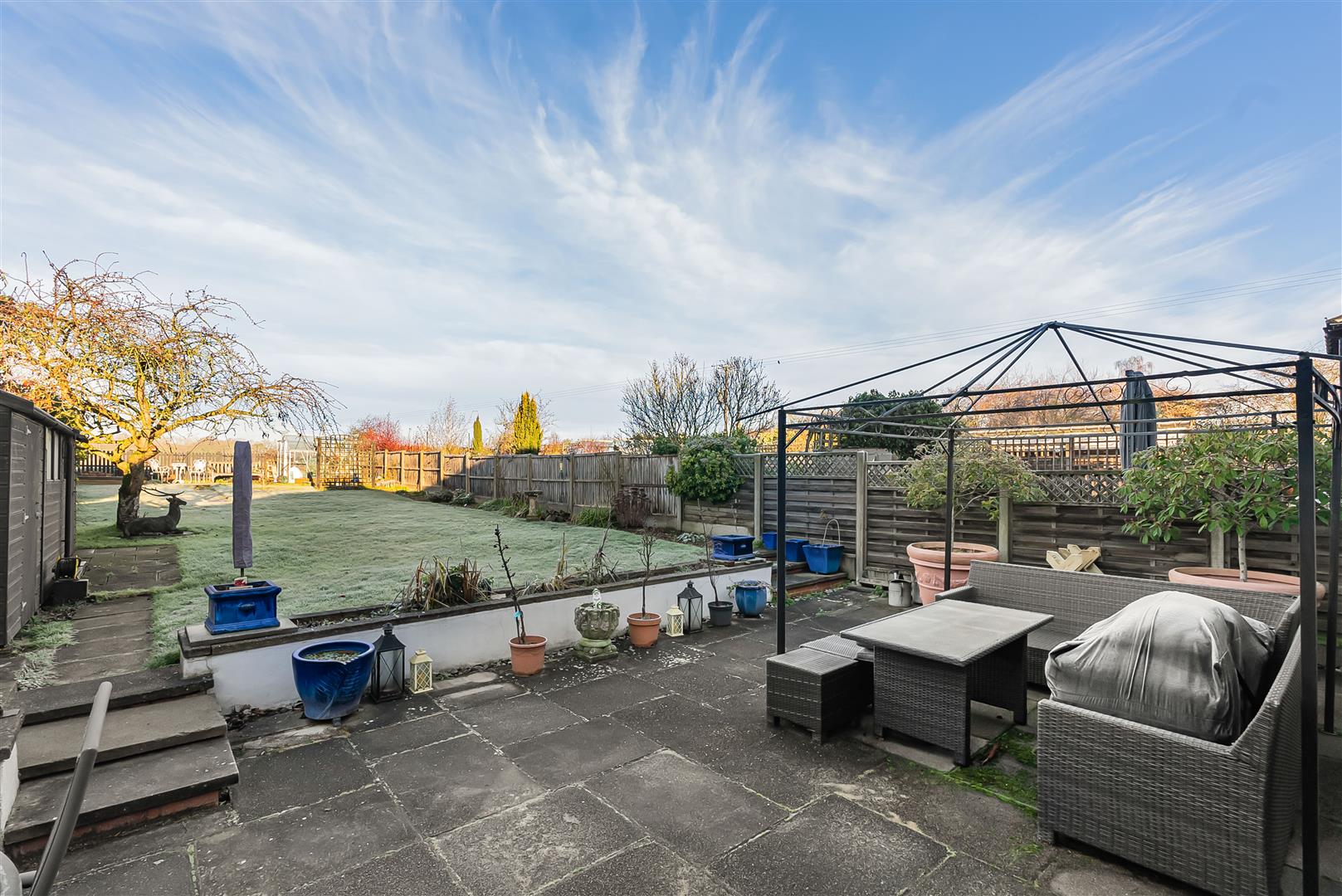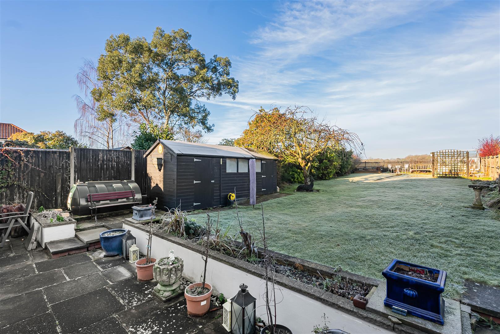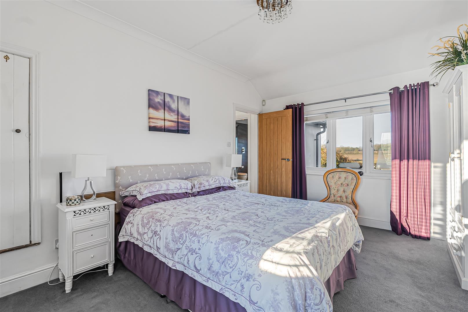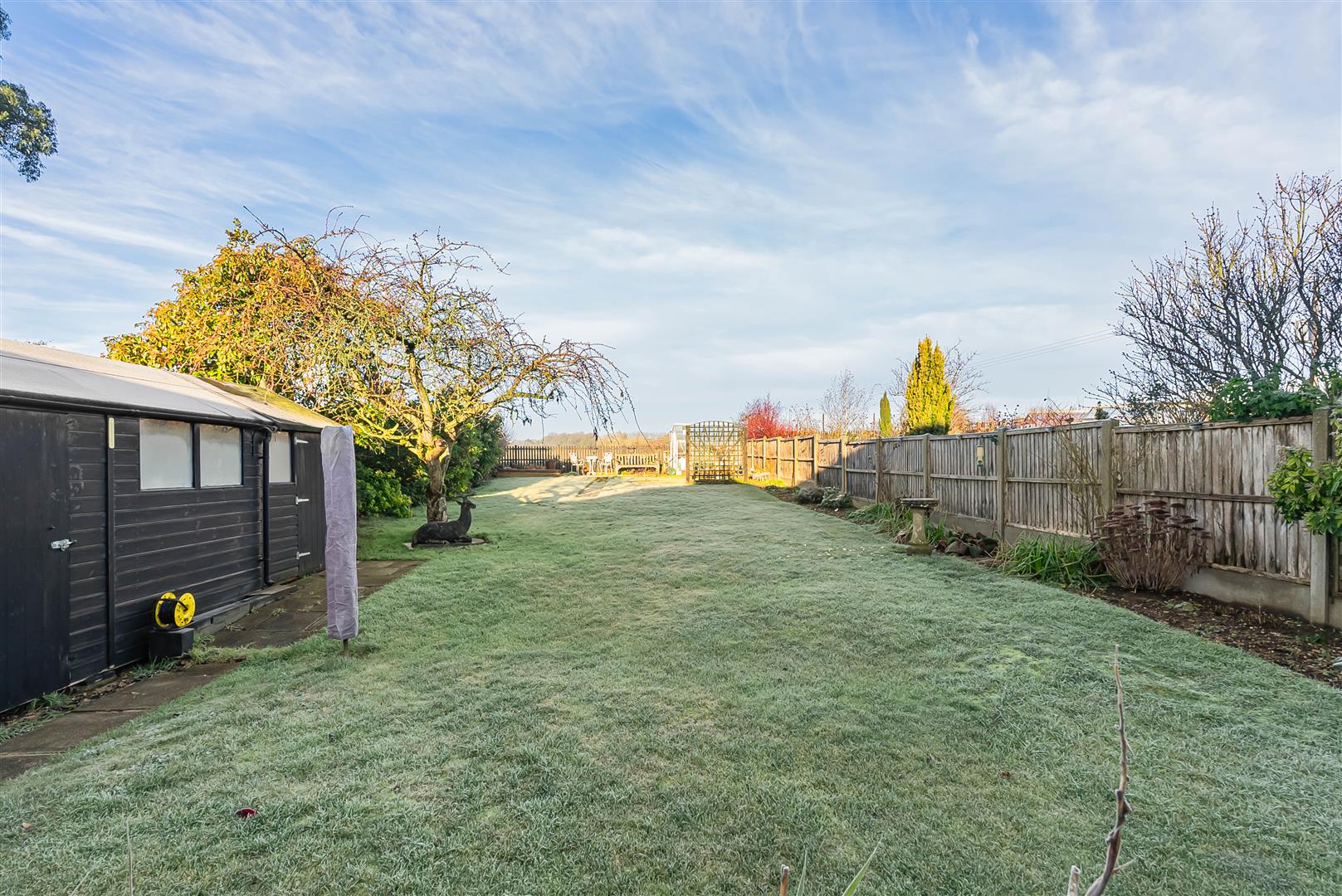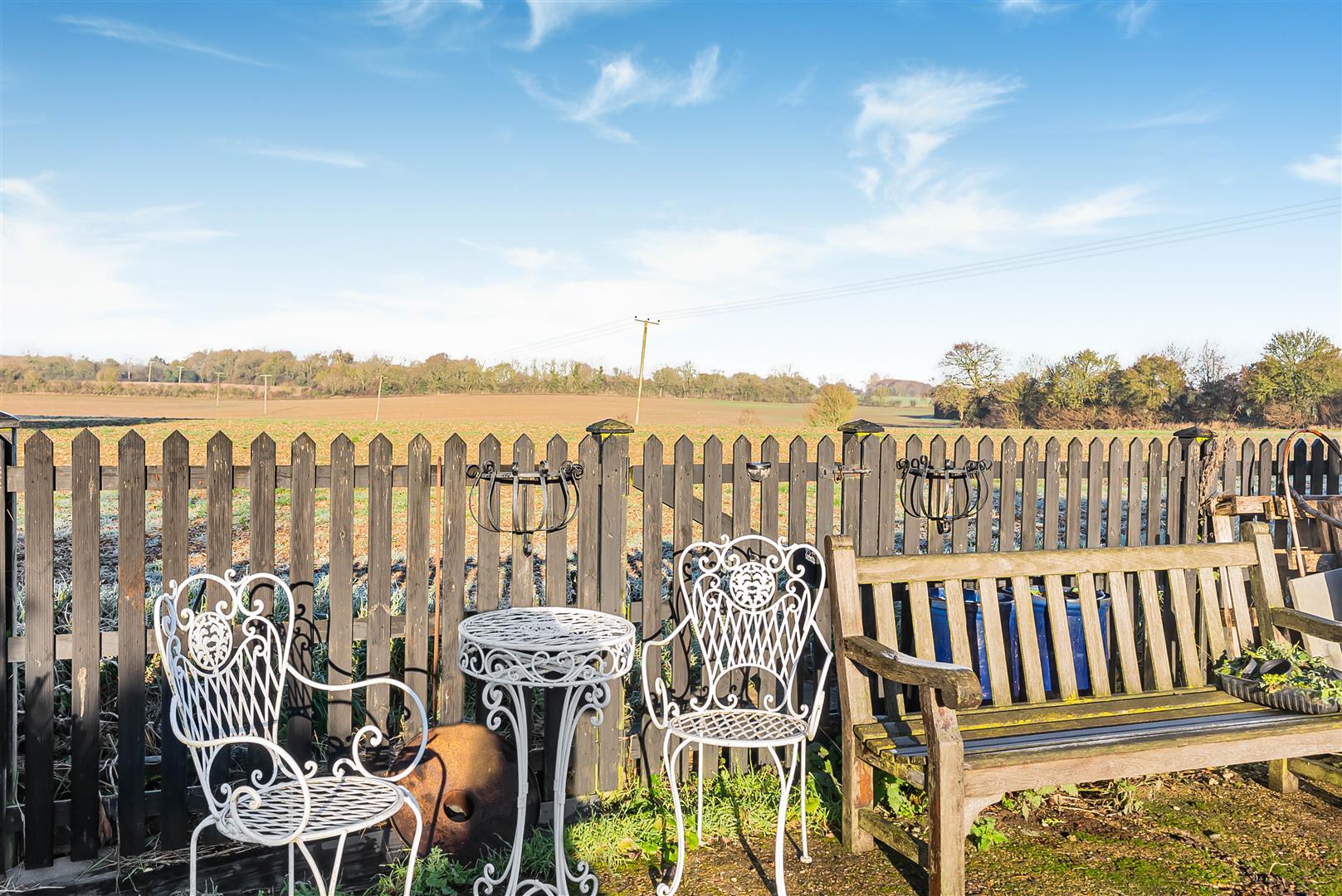 Externally, the property is set back behind a driveway providing parking for several vehicles. The rear garden is generous in size, highly private and laid mainly to lawn with established planting. A terrace directly off the house offers an ideal space for outdoor dining, while a further seating area to the rear of the garden takes full advantage of the open farmland views beyond. A timber shed provides additional storage.
