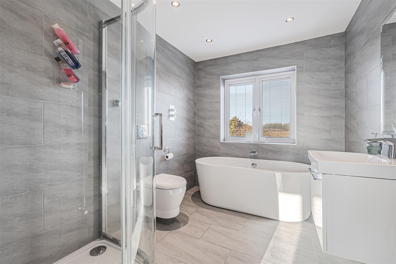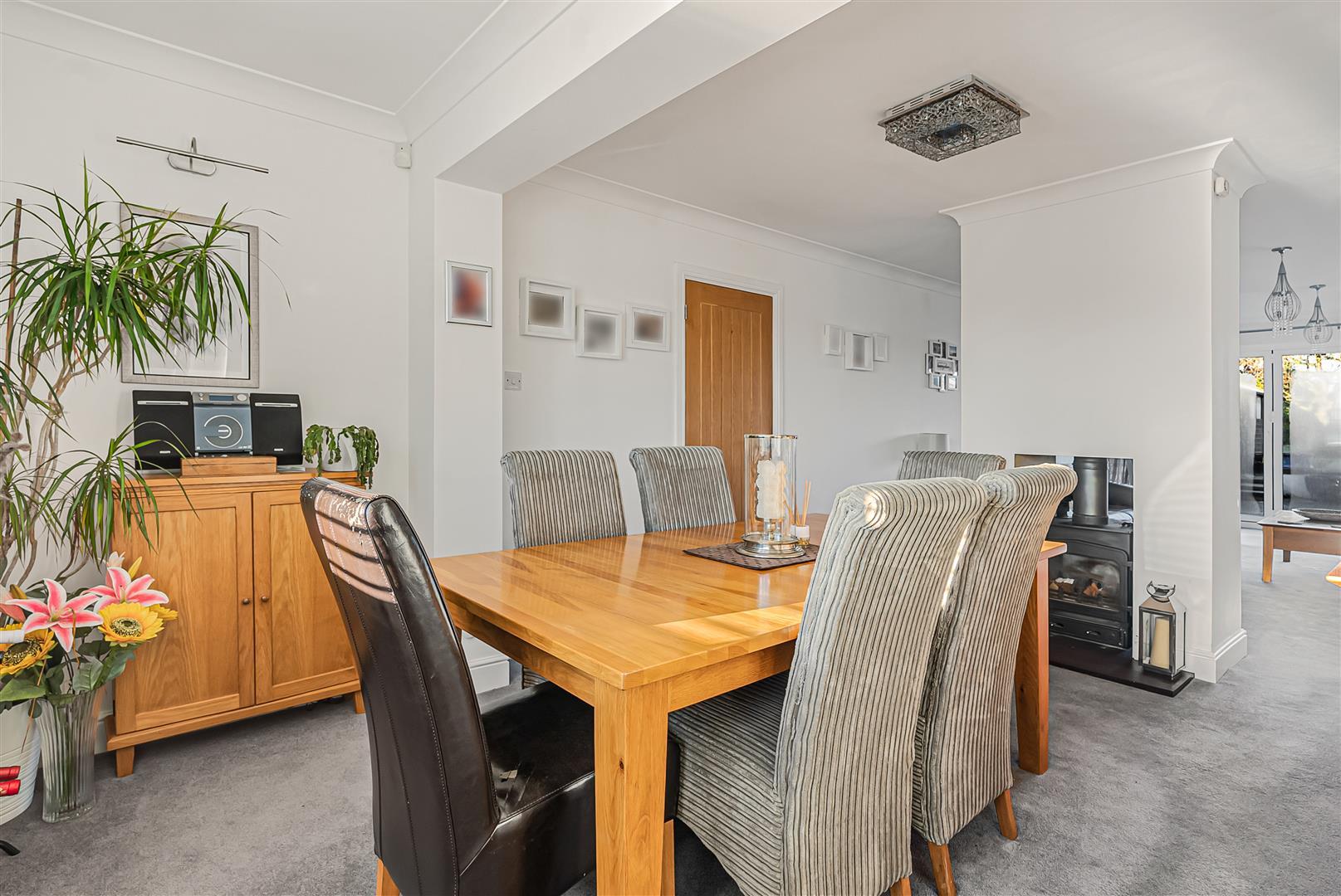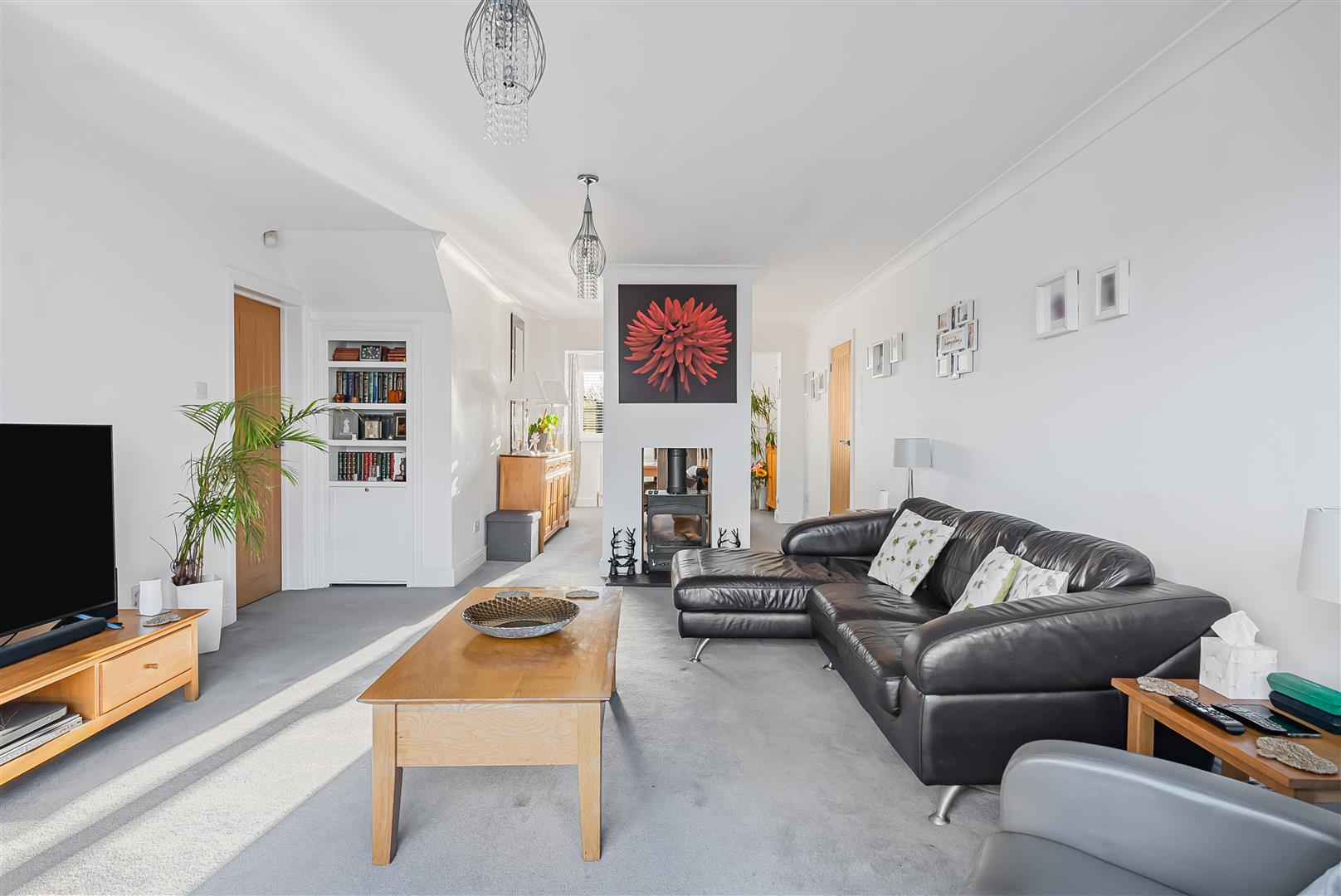 The kitchen flows into a dual-aspect lounge and dining room, centred around a striking double log burner. This inviting space enjoys countryside views to the front and bi-folding doors to the rear, creating a seamless connection with the garden and an ideal setting for both family life and entertaining.