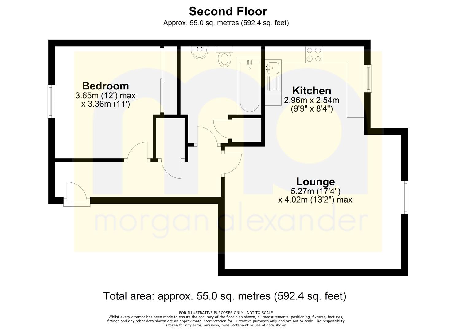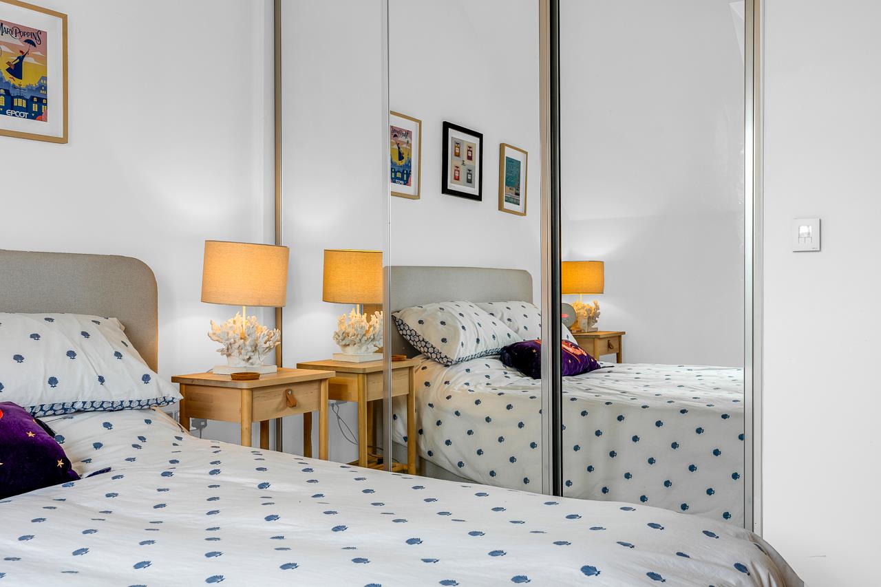 The bright and spacious bedroom offers tranquil views over the beautifully maintained communal grounds.