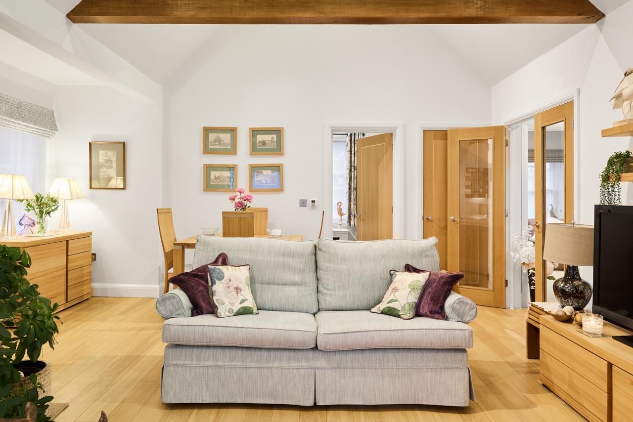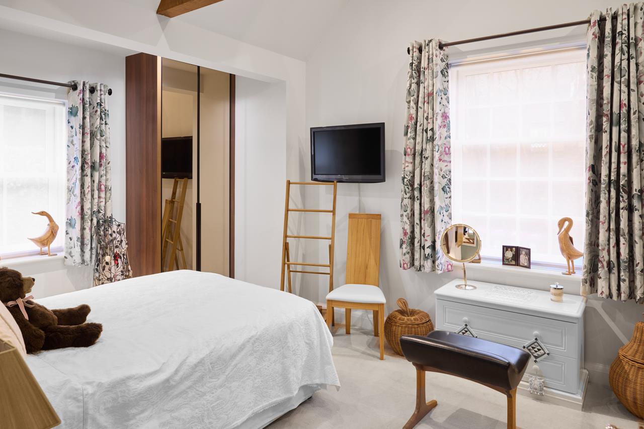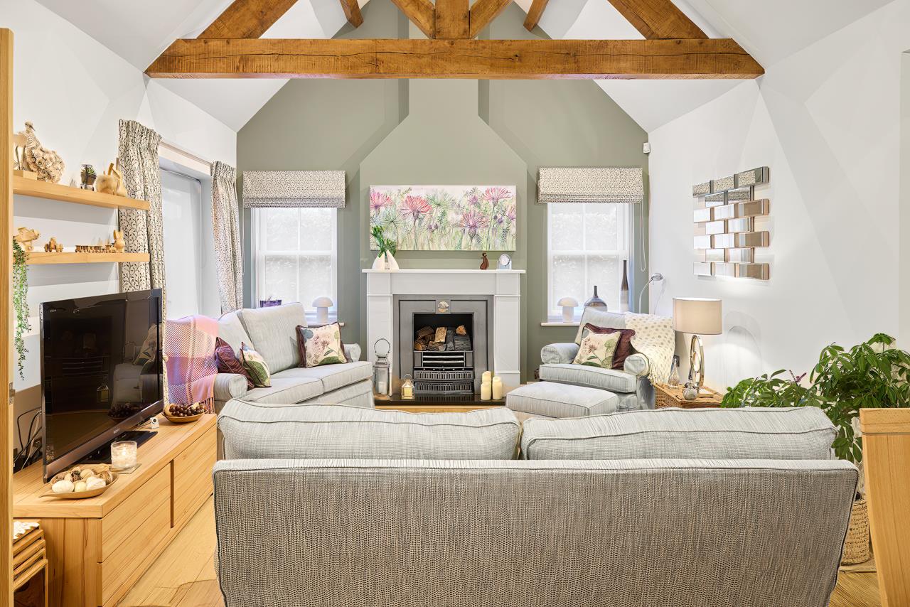 The property blends period charm with high quality contemporary finishes. The impressive main reception room features oak flooring, a vaulted ceiling with exposed oak trusses and a contemporary fire with marble surround and raised hearth, creating a striking focal point and real sense of space. Glazed oak doors open into a superb Intoto handleless kitchen fitted with integrated appliances, Quartz work surfaces, mirrored splashbacks and tiled flooring, ideal for both everyday living and entertaining.Both bedrooms are generously proportioned and fitted with bespoke Neatsmith wardrobes with walnut and mirrored sliding doors. The bathroom is luxuriously appointed with Villeroy and Boch sanitaryware and Porcelanosa wall and floor tiling. Further benefits include underfloor heating, recessed lighting and a full alarm system.