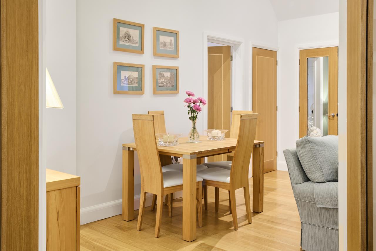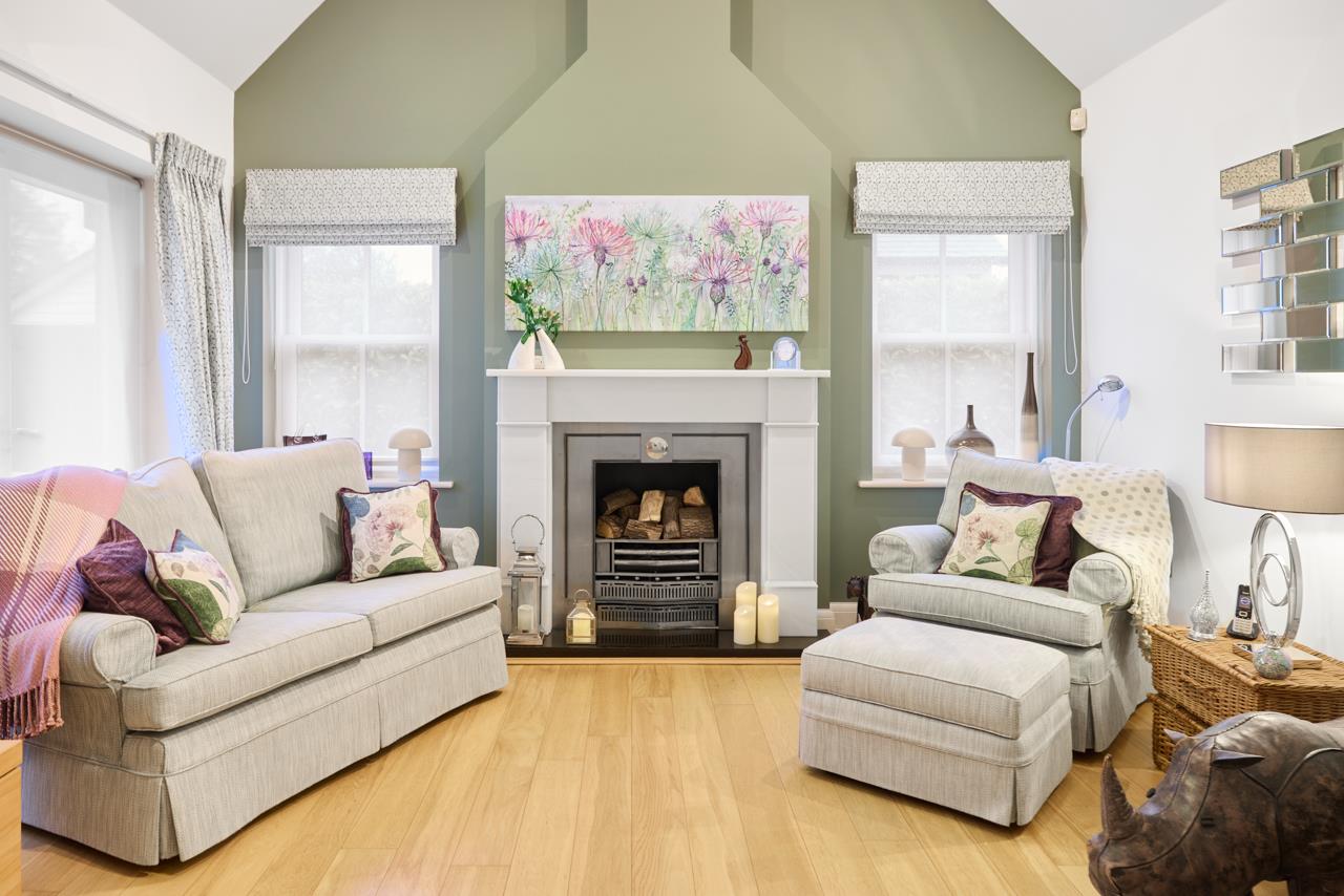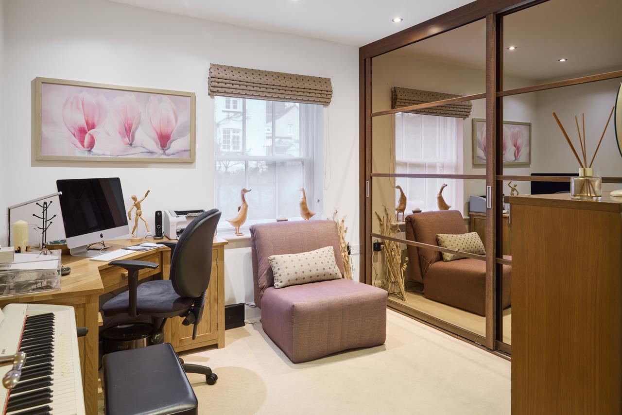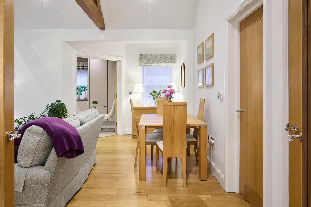 The property blends period charm with high quality contemporary finishes. The impressive main reception room features oak flooring, a vaulted ceiling with exposed oak trusses and a contemporary fire with marble surround and raised hearth, creating a striking focal point and real sense of space. Glazed oak doors open into a superb Intoto handleless kitchen fitted with integrated appliances, Quartz work surfaces, mirrored splashbacks and tiled flooring, ideal for both everyday living and entertaining.Both bedrooms are generously proportioned and fitted with bespoke Neatsmith wardrobes with walnut and mirrored sliding doors. The bathroom is luxuriously appointed with Villeroy and Boch sanitaryware and Porcelanosa wall and floor tiling. Further benefits include underfloor heating, recessed lighting and a full alarm system.