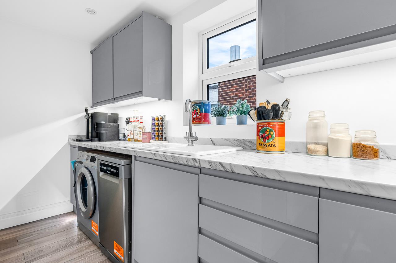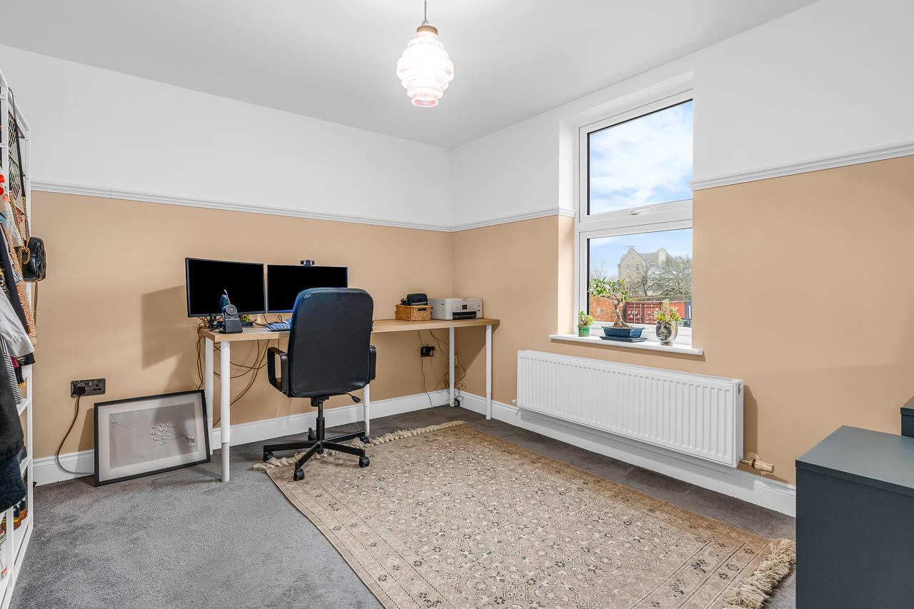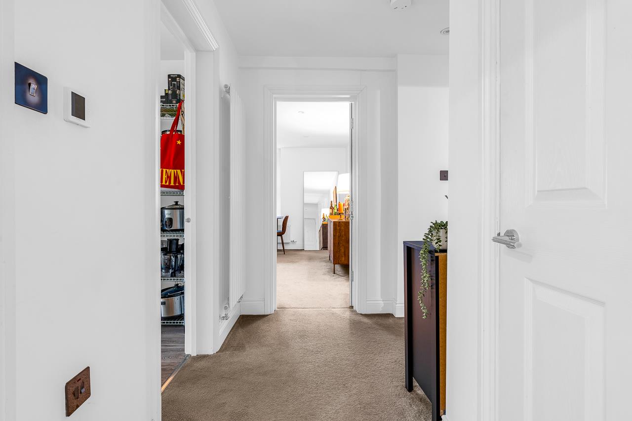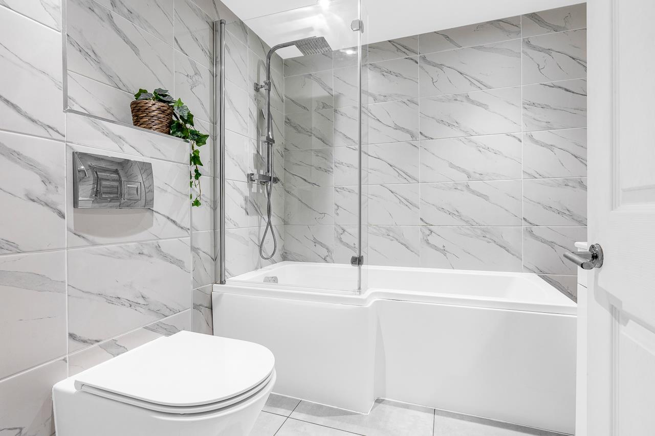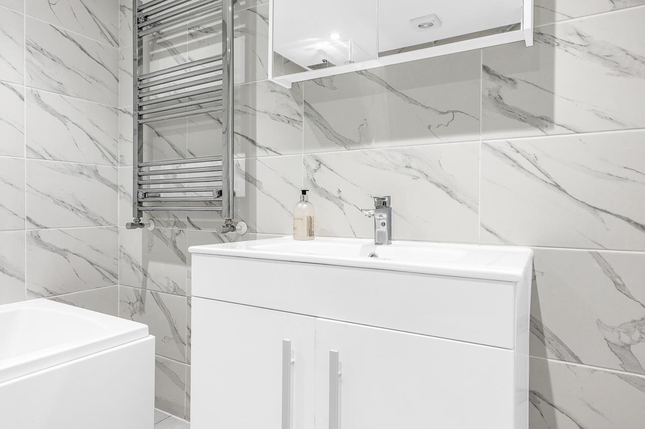 There are two genuine double bedrooms, with the main bedroom benefiting from space for wardrobe, while the second bedroom works perfectly as a guest room, home office or sharer’s bedroom. The accommodation is completed by a luxury bathroom finished to a modern standard with a shower over the bath.