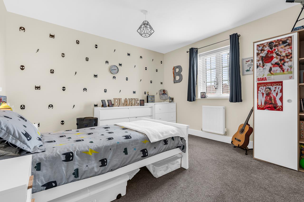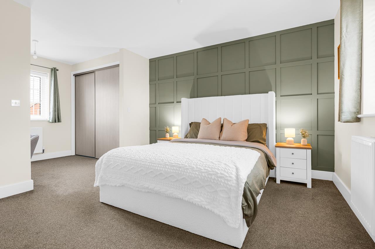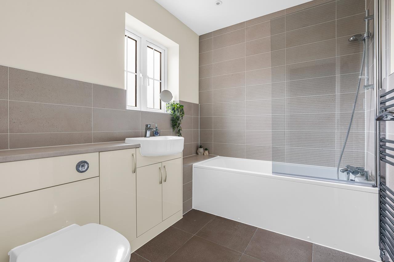 Upstairs, the generous landing leads to a dual-aspect master bedroom featuring a dressing area and contemporary en-suite shower room. A guest bedroom also benefits from its own en-suite, while two further well-proportioned bedrooms are served by a modern family bathroom.