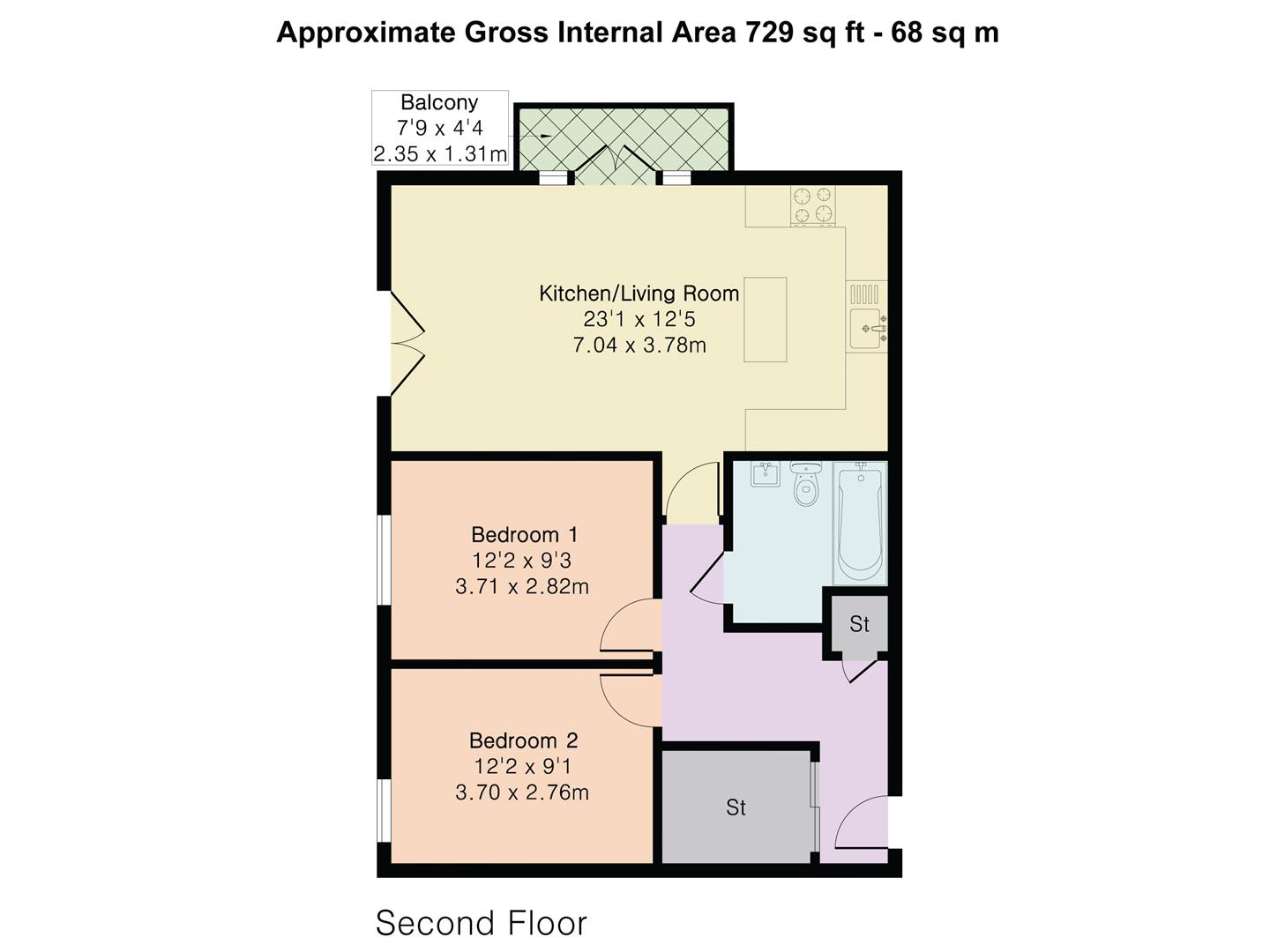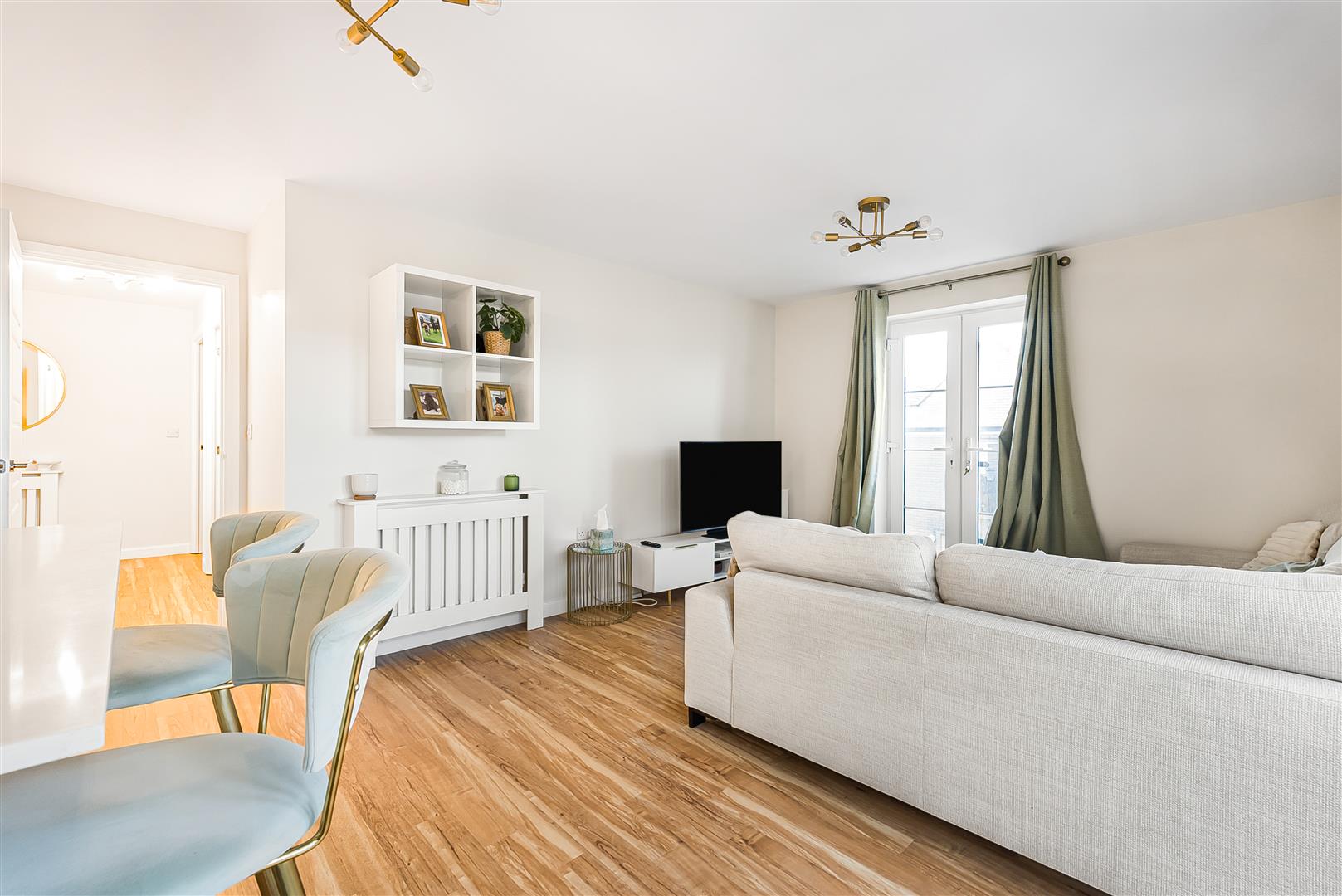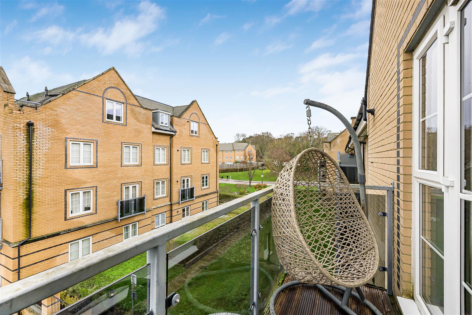 Chain Free - A well presented and generously proportioned two double bedroom second floor apartment set within the ever popular Kingsmead Court development, ideally positioned just a short walk from Hertford East station and the town centre.The property offers bright and practical accommodation throughout. The heart of the home is the upgraded kitchen, fitted with an island unit providing both additional preparation space and informal seating, opening seamlessly into a spacious lounge and dining area. Twin sets of French doors flood the room with natural light, one leading to a private balcony and the other to a Juliet balcony, creating an airy and inviting living space suited to both everyday living and entertaining.
