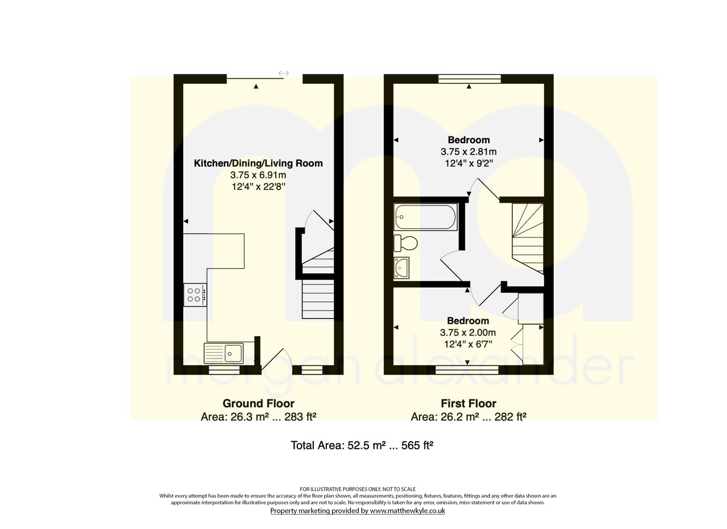 Upstairs, the house features two well-proportioned double bedrooms, along with a modern family bathroom finished to a good standard.
