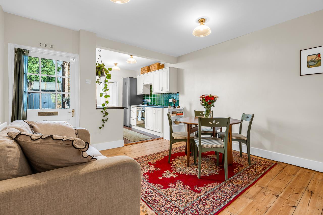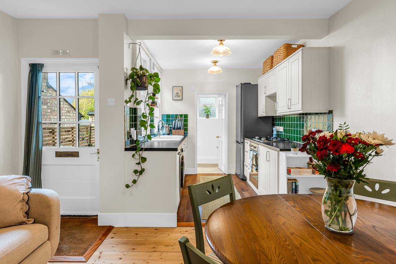 The living room sits at the front of the house and is a warm, inviting space, centred around a characterful log burner. To the rear, the dining room opens directly into the kitchen, creating a sociable and practical layout with useful understairs storage and direct access to the garden.