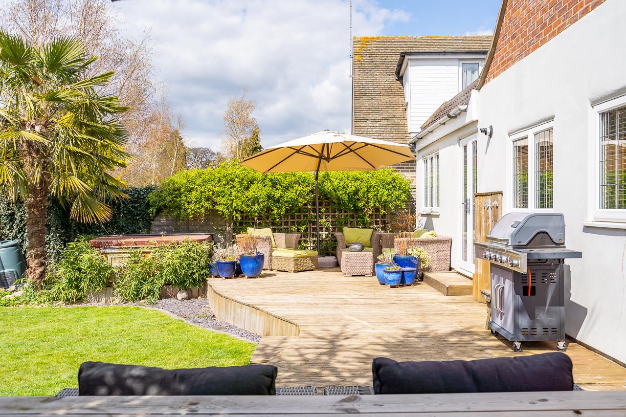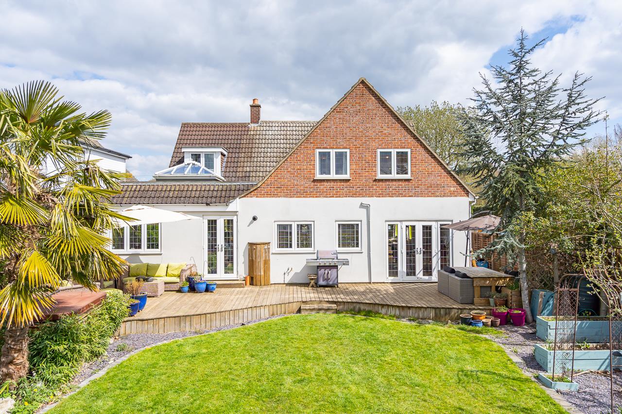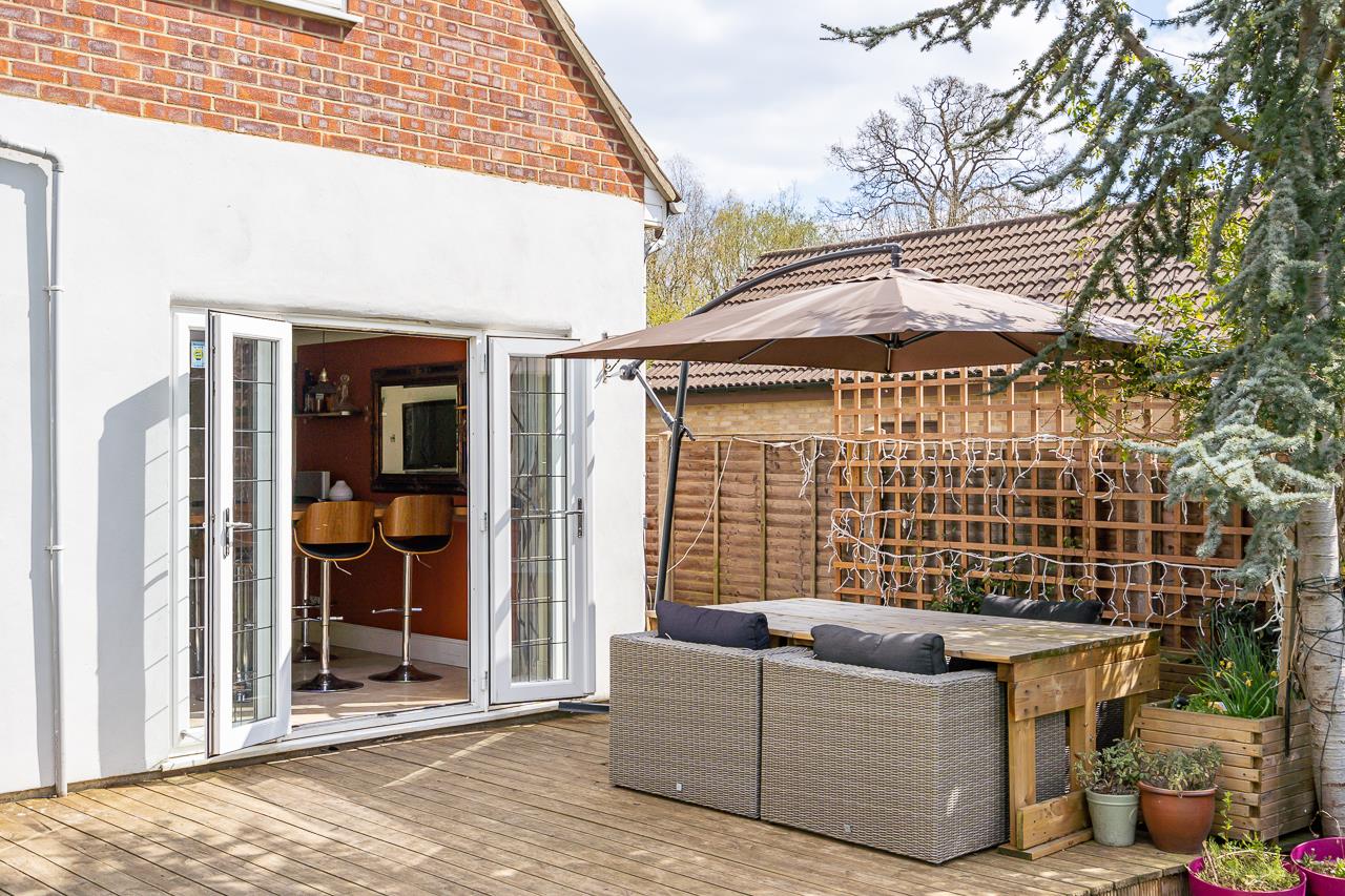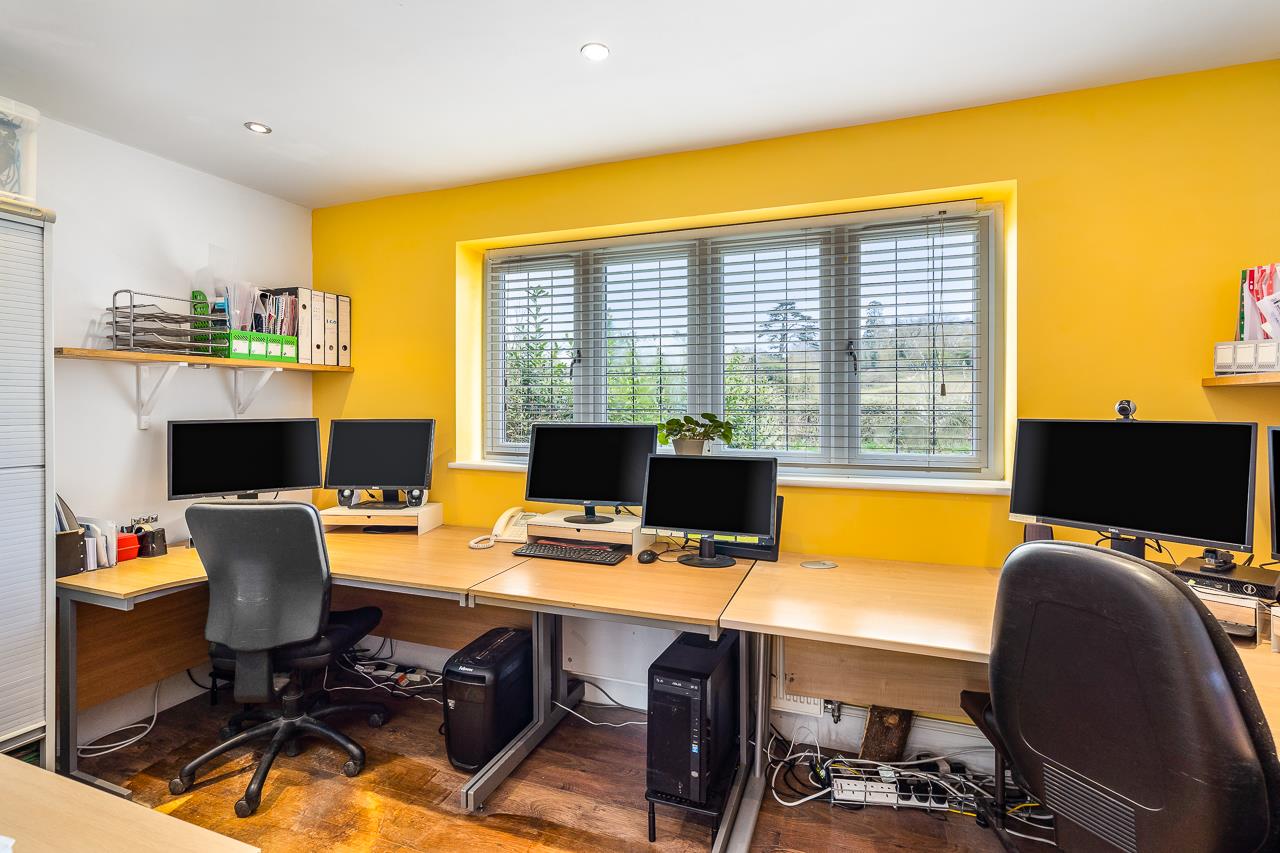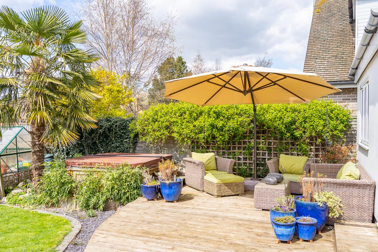 The rear garden enjoys a desirable south-facing aspect, offering a high degree of privacy and a mature, established feel. Of particular note is the modern garden building, currently configured as a home office/gym, providing excellent additional space away from the main house.