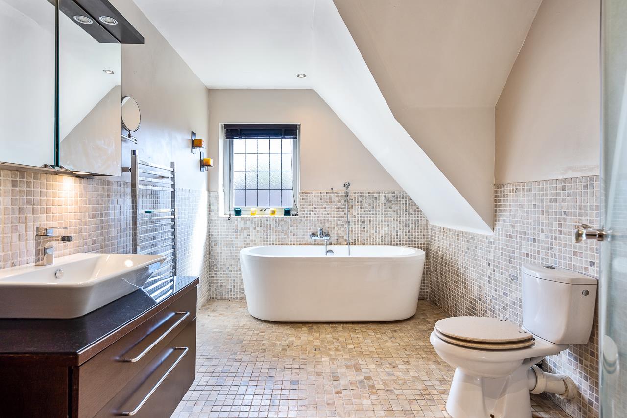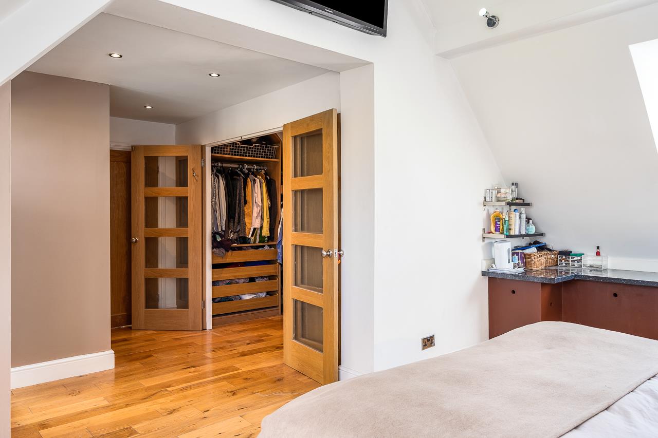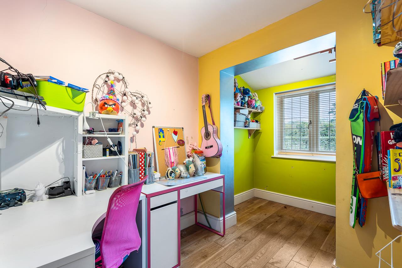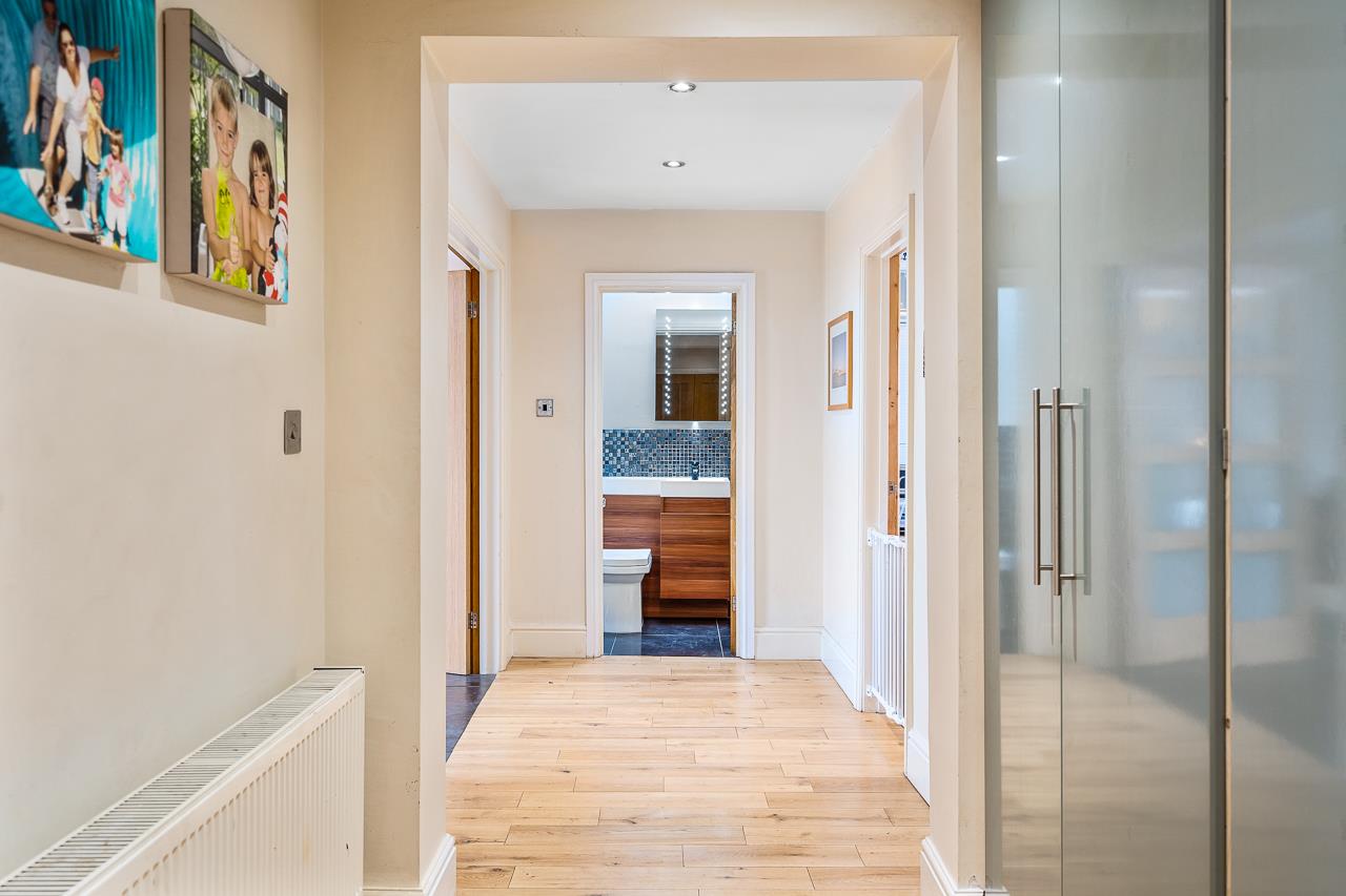 Upstairs, the principal bedroom is a standout feature, benefitting from a walk-in dressing room and a well-appointed en-suite shower room. There are three further double bedrooms, all served by a modern family bathroom.
