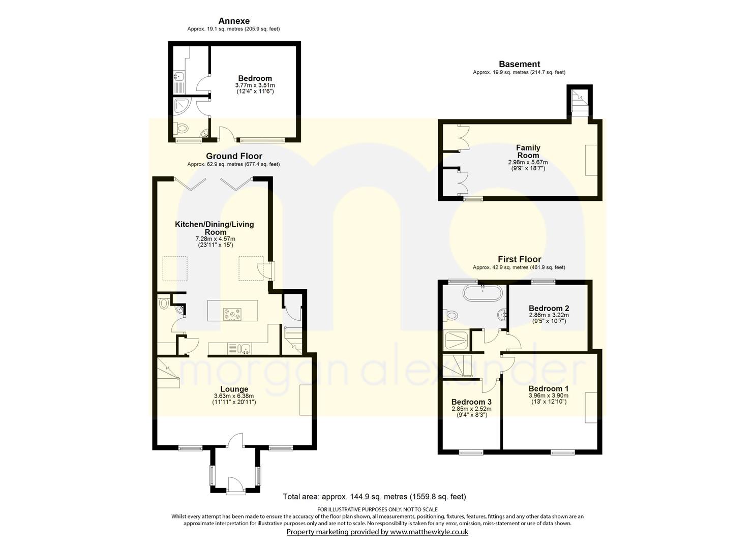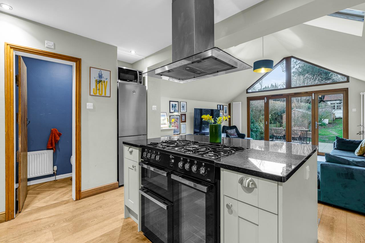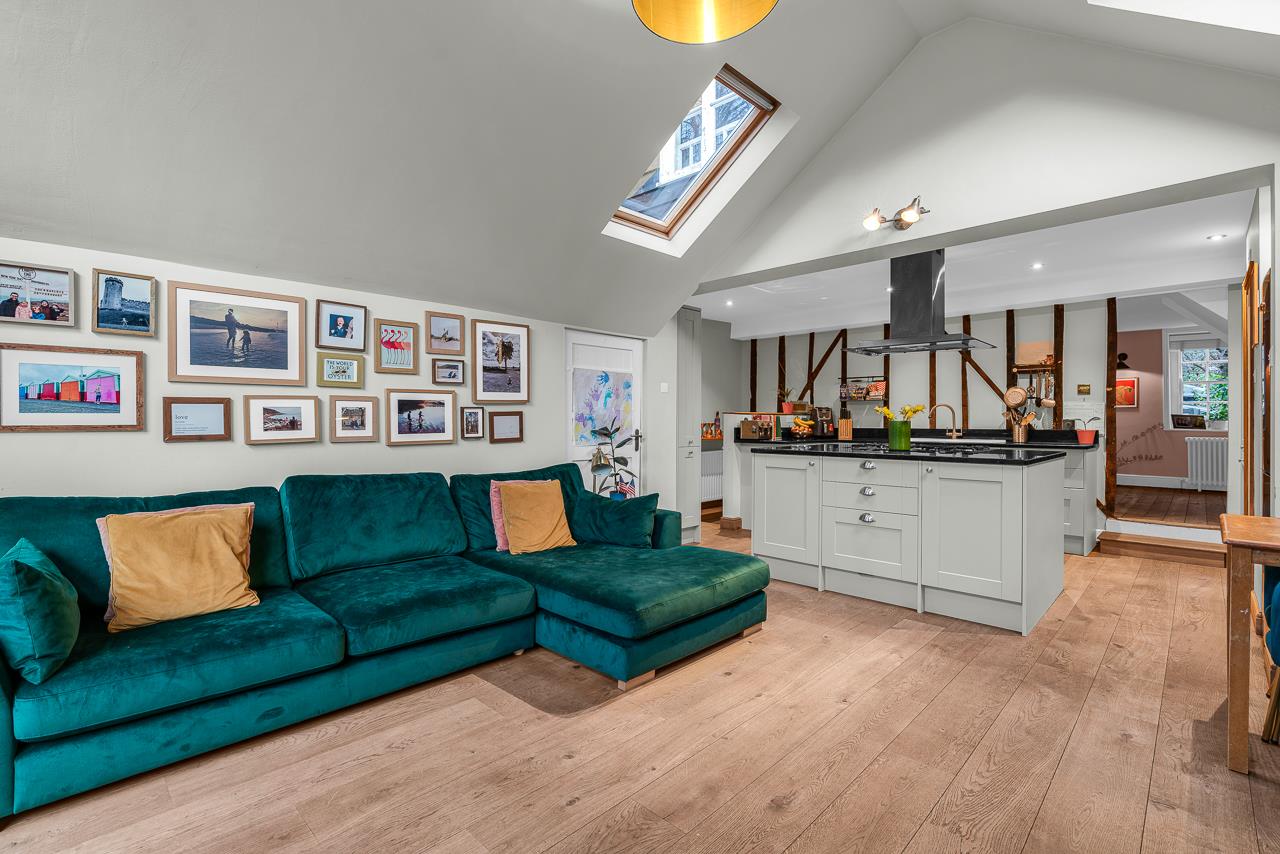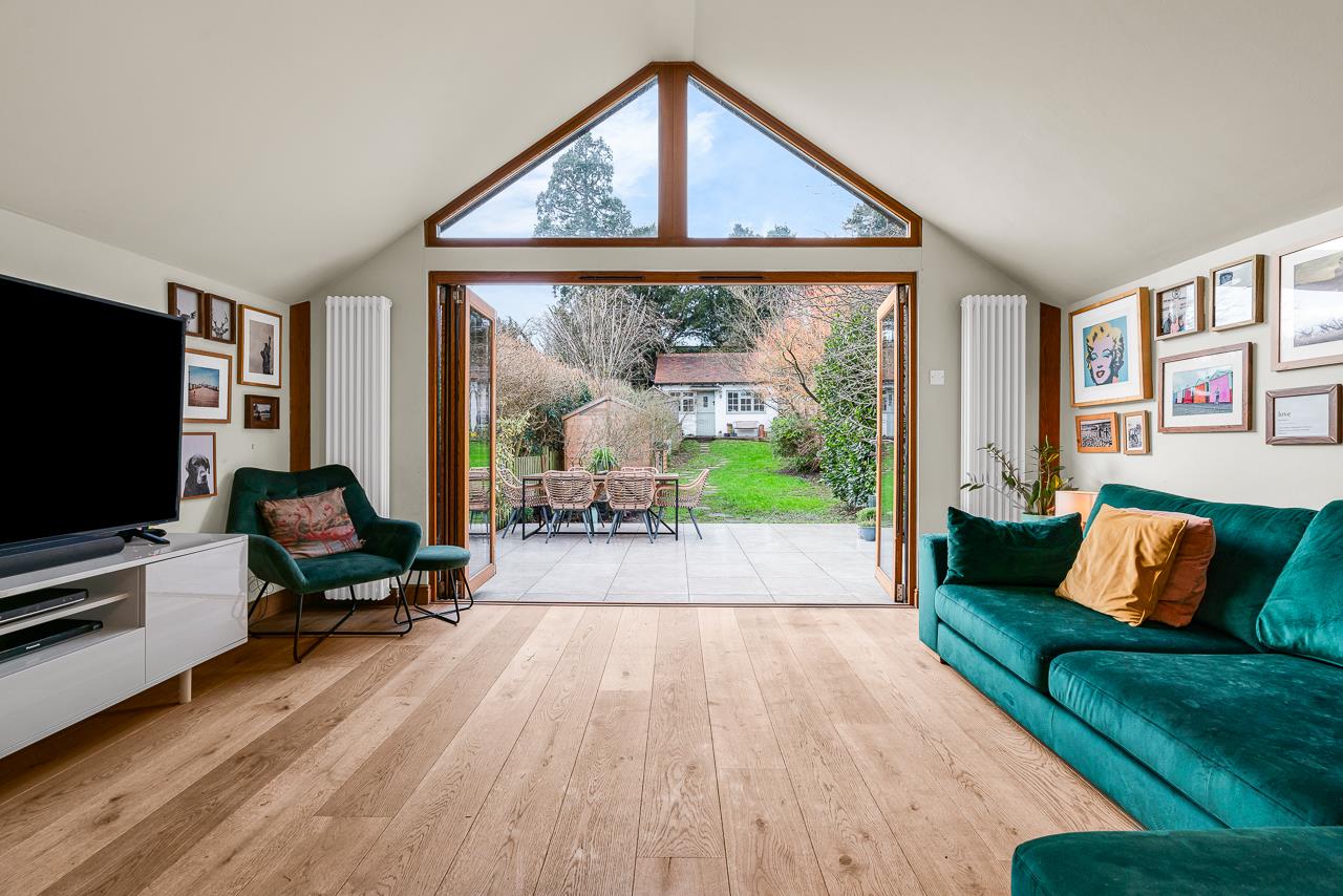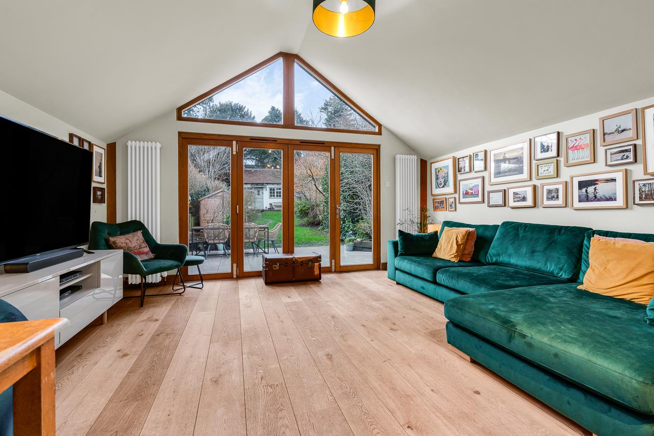 This home offers entrance porch, an impressive lounge with feature fireplace with log burner, sash windows, exposed beams, stairs to first floor and wooden flooring. Steps down lead you the hub of the home, the kitchen/ dining/ living room with partly vaulted ceiling and views out to the garden. The fitted kitchen area enjoys several built-in appliances, granite work tops and central island unit. This area is open plan to the dining and living area with bi-folding doors to the garden. A door provides access to the cloakroom/WC and steps lead down to the family room with excellent head height and window.