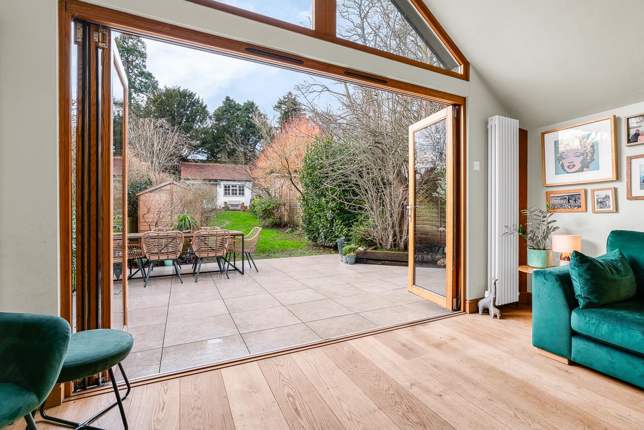 Attractive as the house itself is, it may well be the west facing garden you really fall in love with. A decked terrace opens out from the kitchen leading to an extensive lawn, dotted with trees, shrubs and flowerbeds. Substantial hedges offer privacy while adding to the greenery. There is a gate at the rear leading to a footpath, with access to the front of the property.