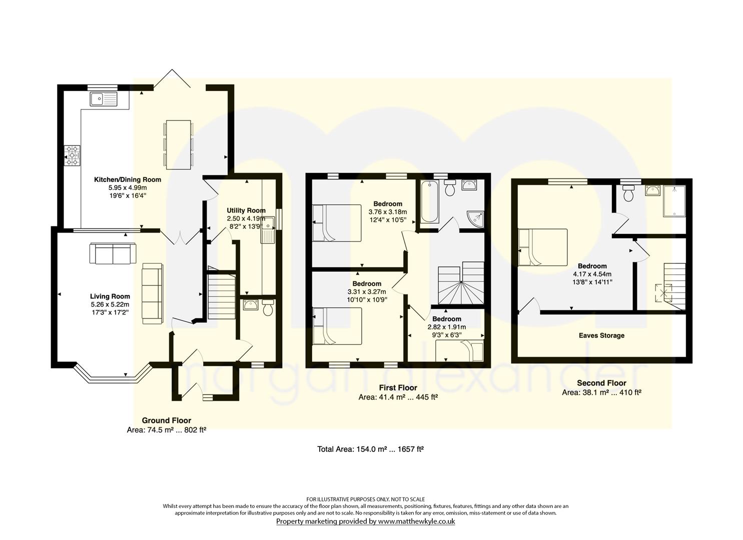 Upstairs, the accommodation is intelligently arranged. The top floor is dedicated to a generous principal bedroom suite with the benefit of a nearby en-suite bathroom, creating a private retreat. The first floor offers three well-proportioned bedrooms served by a high-quality family bathroom with modern fittings.