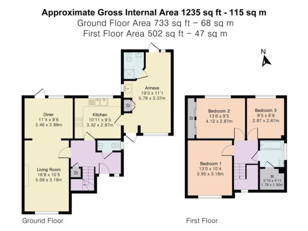 Upstairs, the first floor offers three generous double bedrooms along with a recently fitted family bathroom, all arranged off a central landing.
