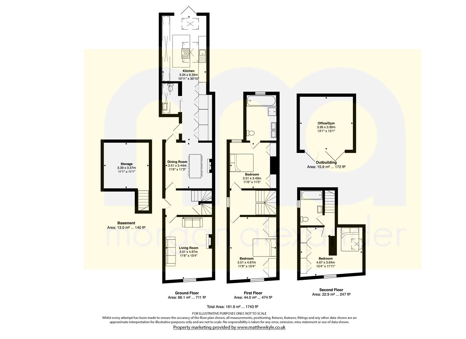 The lower ground floor provides a large, highly usable basement with terracotta tiled flooring, industrial-style shelving and integrated drying space.