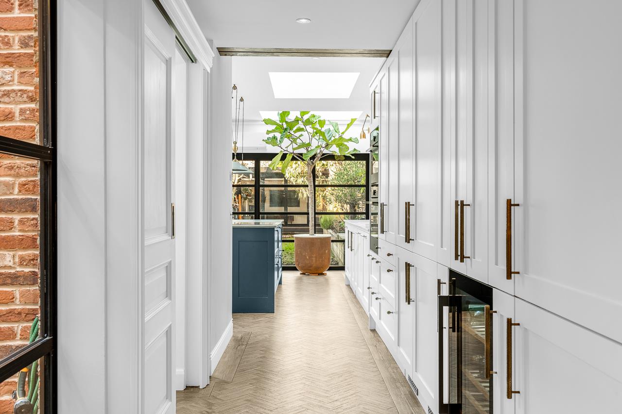 From the outset, this home sets the tone with a bespoke London Door Company front door opening into a welcoming hallway where original character meets refined modern finishes. Period features sit comfortably alongside thoughtful upgrades, creating a house that feels both elegant and quietly luxurious.The ground floor offers excellent family living space, including a generous living room with wood-burning stove, a separate dining room, and an impressive extended kitchen/breakfast room forming the heart of the home. Flooded with natural light from a partly glazed roof and Crittall-style bi-fold doors, the kitchen opens seamlessly onto the rear garden and benefits from underfloor heating and a striking green living roof. A well-positioned ground floor cloakroom sits directly off the kitchen.