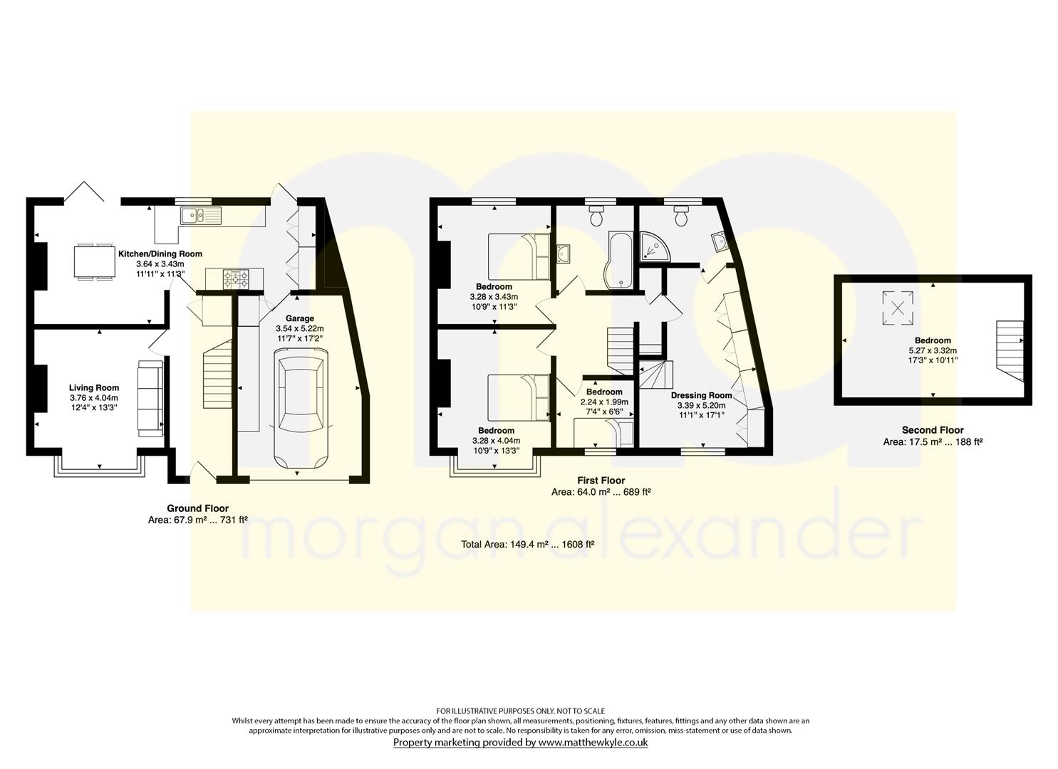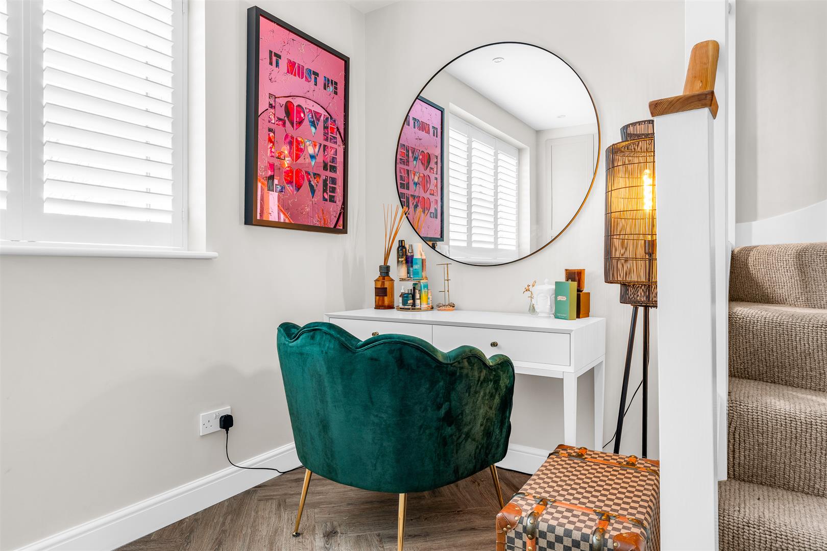 The first floor offers three well-proportioned bedrooms served by a stylish family bathroom. The main bedroom is arranged as a split-level suite, incorporating a dressing room area and a contemporary en-suite, creating a spacious and private principal retreat.
