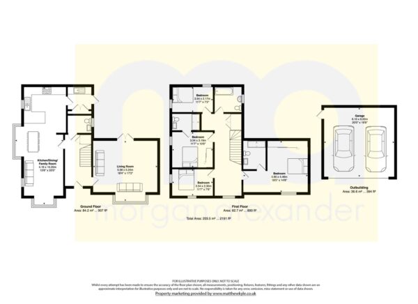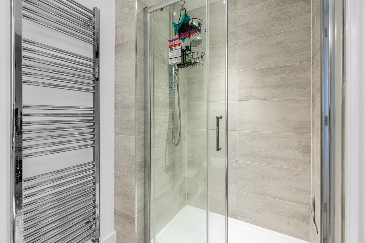 Upstairs, the principal bedroom suite includes fitted wardrobes and a luxurious en-suite shower room. The guest bedroom also has an en-suite and built-in storage, while two further bedrooms and a beautifully appointed family bathroom complete the floor.