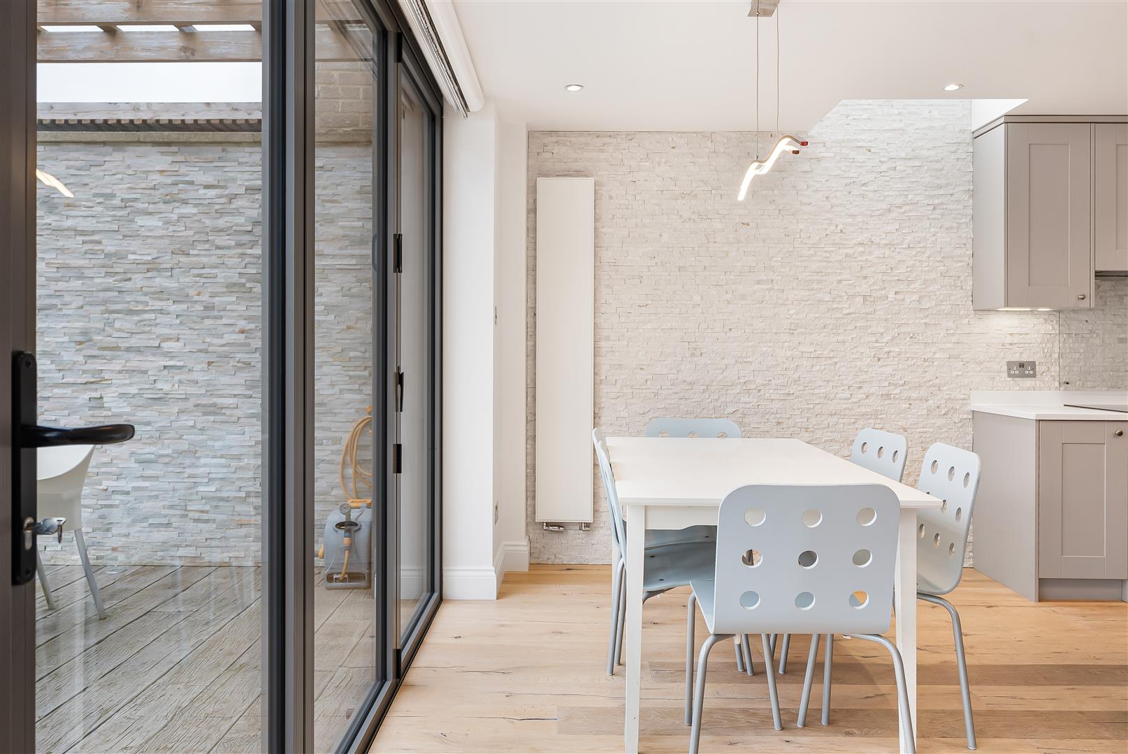 The centrepiece of the home is the impressive open-plan kitchen, dining and family room created by the full-width rear extension. Skylight windows and full-width bi-fold doors flood the space with natural light, creating an excellent environment for everyday living and entertaining.