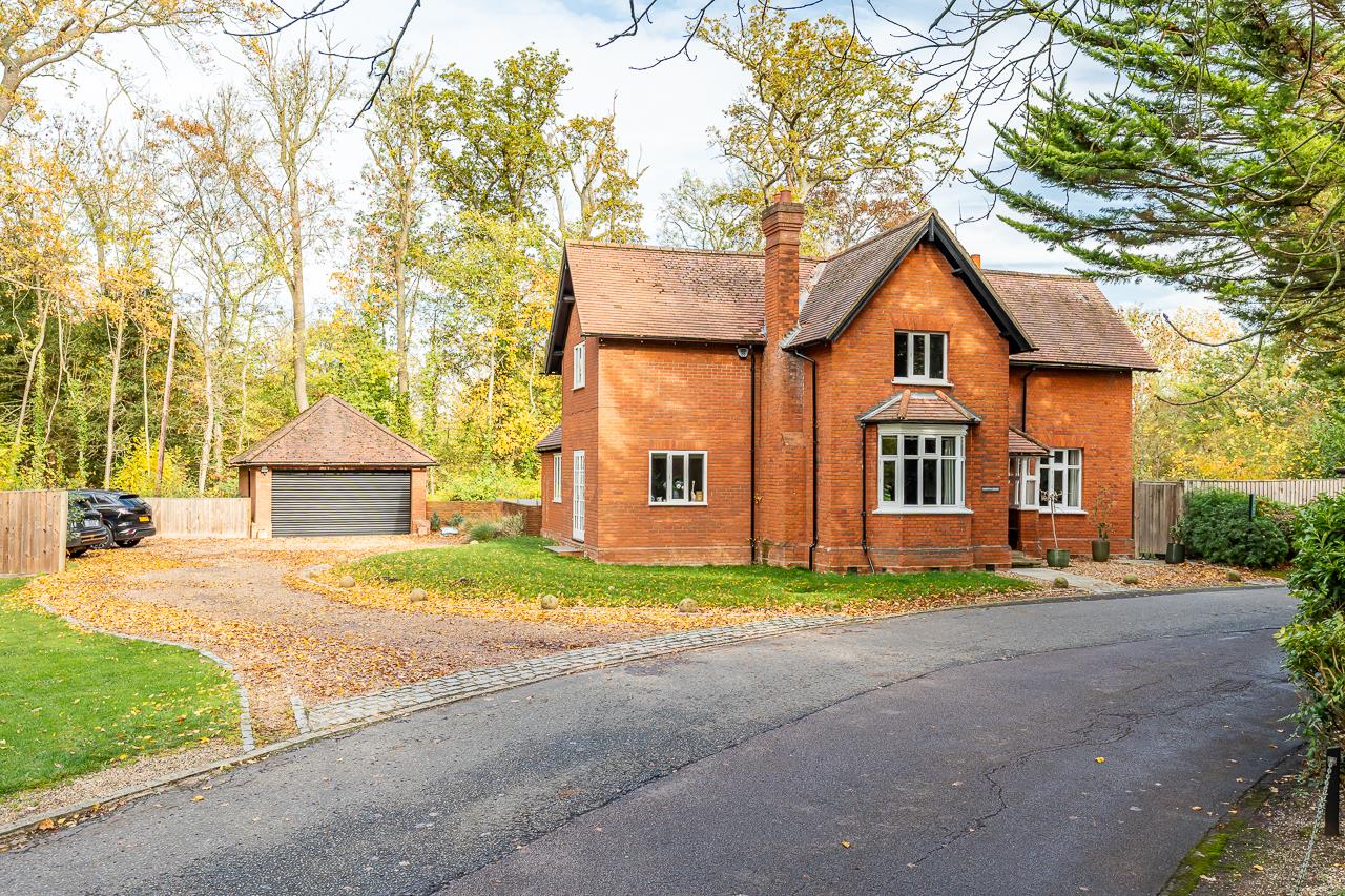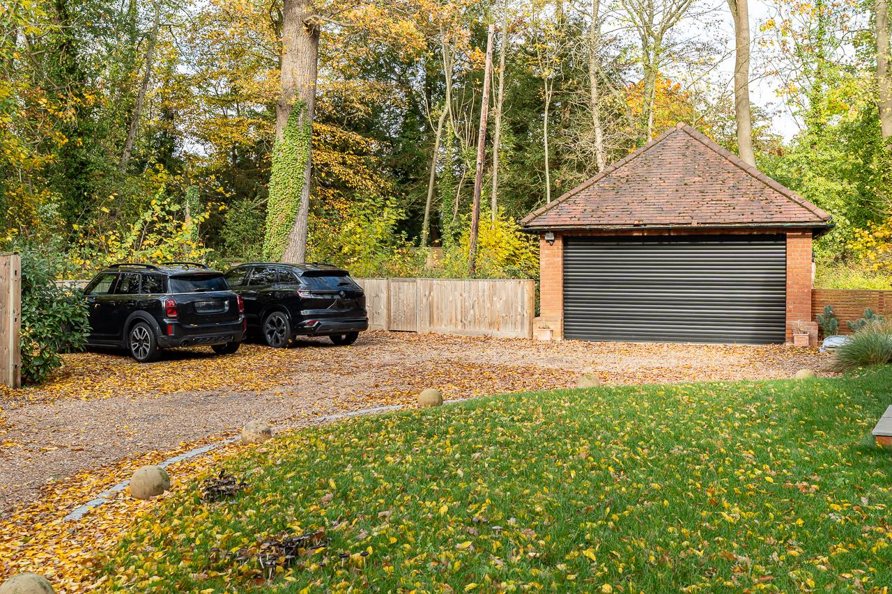 Set within mature grounds approaching an acre, North Lodge occupies a commanding position at the entrance to Hanbury Manor. A sweeping driveway offers ample parking and leads to a detached double garage. The rear garden provides a wonderful setting for family life and entertaining, with a broad terrace, expansive lawn, and mature trees ensuring privacy and seclusion.