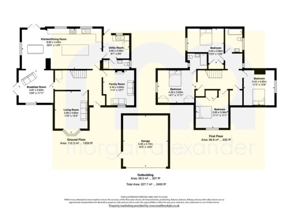 A spacious landing leads to four double bedrooms, all beautifully presented. The principal suite includes an elegant en suite shower room, while the remaining bedrooms are served by a stylish family bathroom.