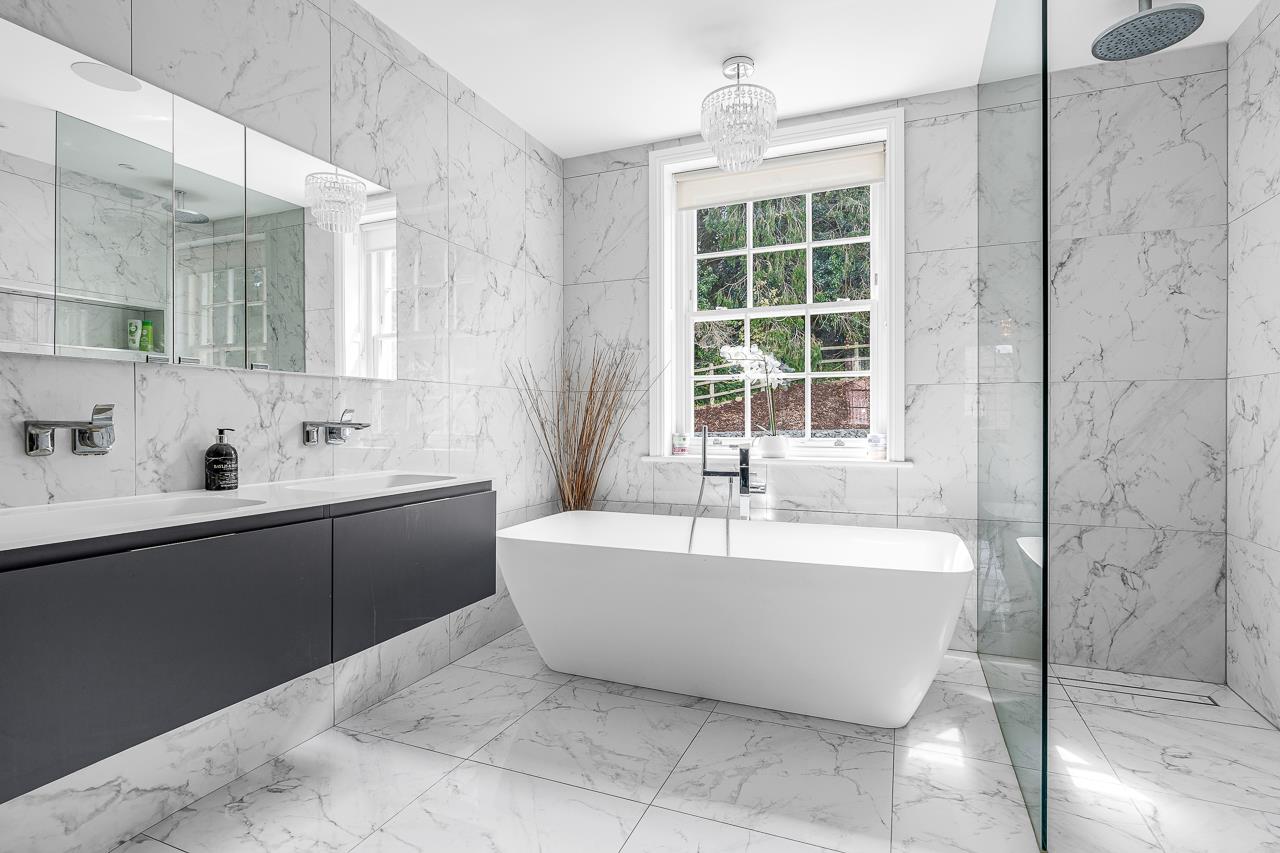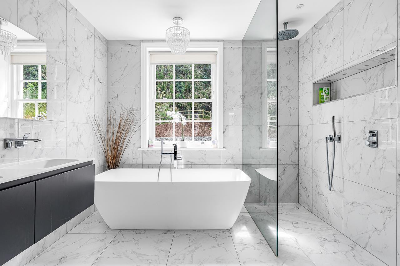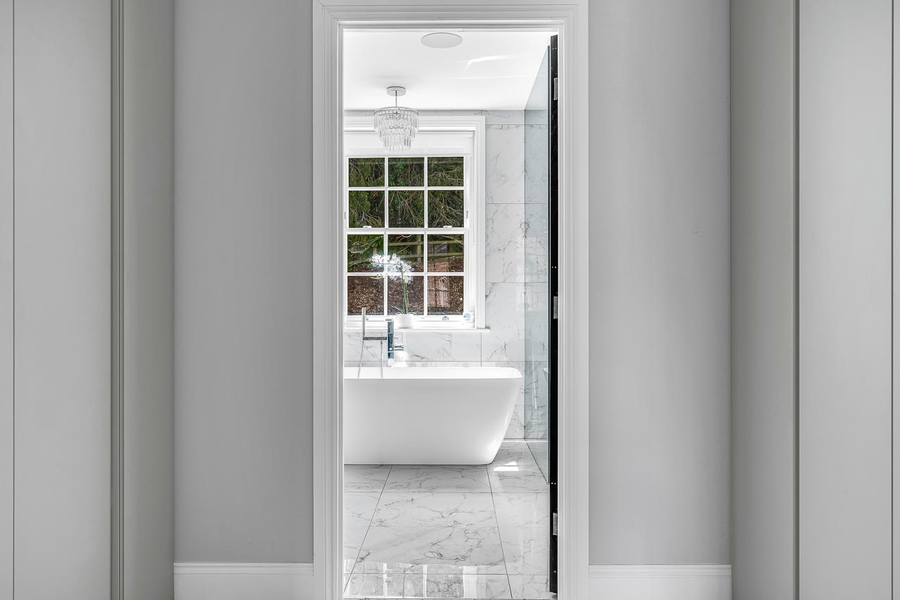 The master bedroom, which has two dressing rooms and a sumptuous en suite, plus a further double bedroom/large office and a large storage cupboard are on the first floor, while a family shower room serves the two double bedrooms on the top floor.