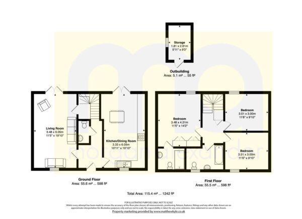 Outside, the landscaped rear garden includes a paved terrace, lawn, and a brick-built powered outbuilding – ideal as a home office or gym. There’s also a side access gate and driveway parking for two cars.