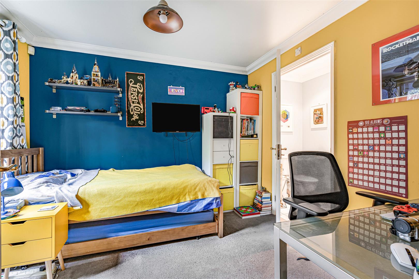 On the lower ground floor, bedroom three offers excellent flexibility as a guest room, study or additional living space. It benefits from an en-suite shower room and French doors opening to the front courtyard. This level also includes a storage cupboard and internal access to the integral garage with electric door. The garage features an additional storage cupboard and a useful bonus room with window, ideal as a home office, gym or hobby room.